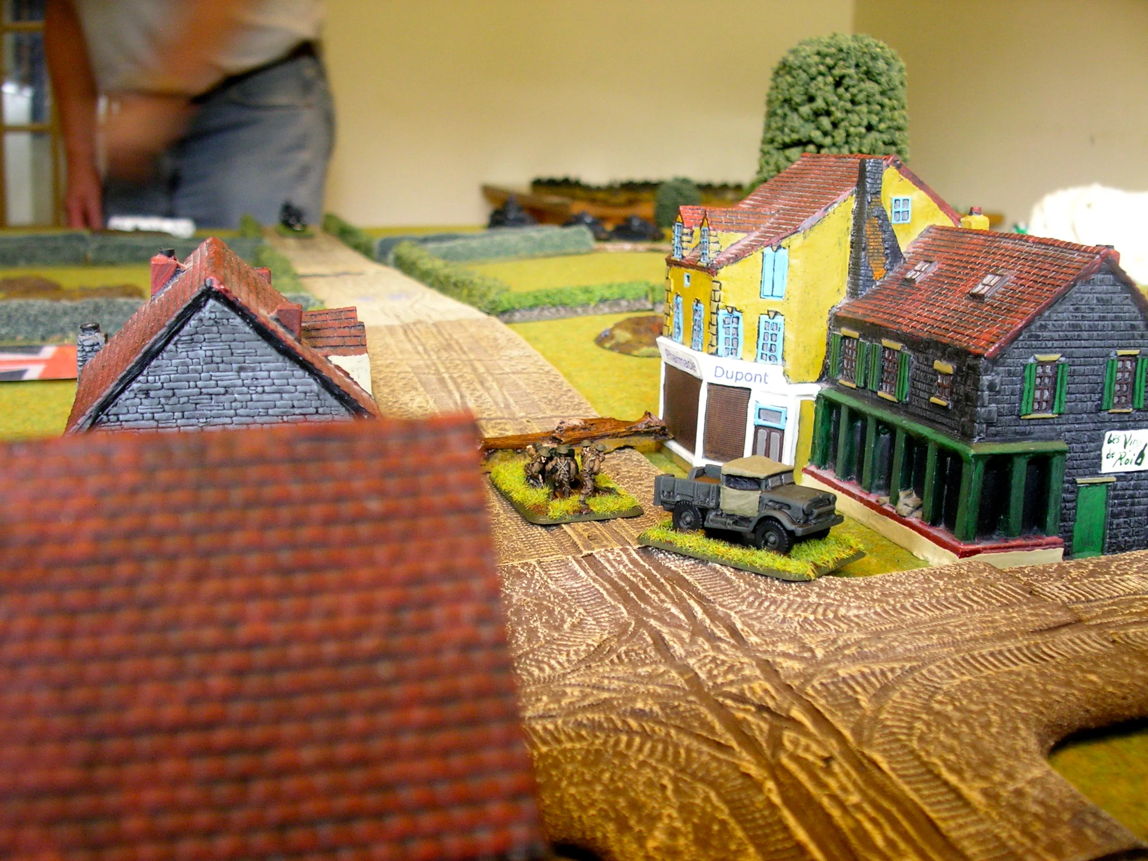 Other than the railhead itself, the main features on the table were the road running straight through the village; fields, hedges and a farm; and an area of dense scrubland near the railway track itself.