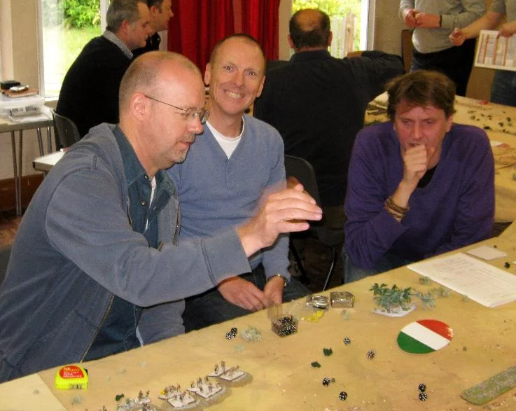 Dom and Keith were taking it really bad on the next table from Egg on our table, so Clive and Mick now moved across and started the whole co-ordination thing again, whilst I moved to occupy the former Italian position with my weak sections. With the perimeter breached, however, the game ended as the action moved on...