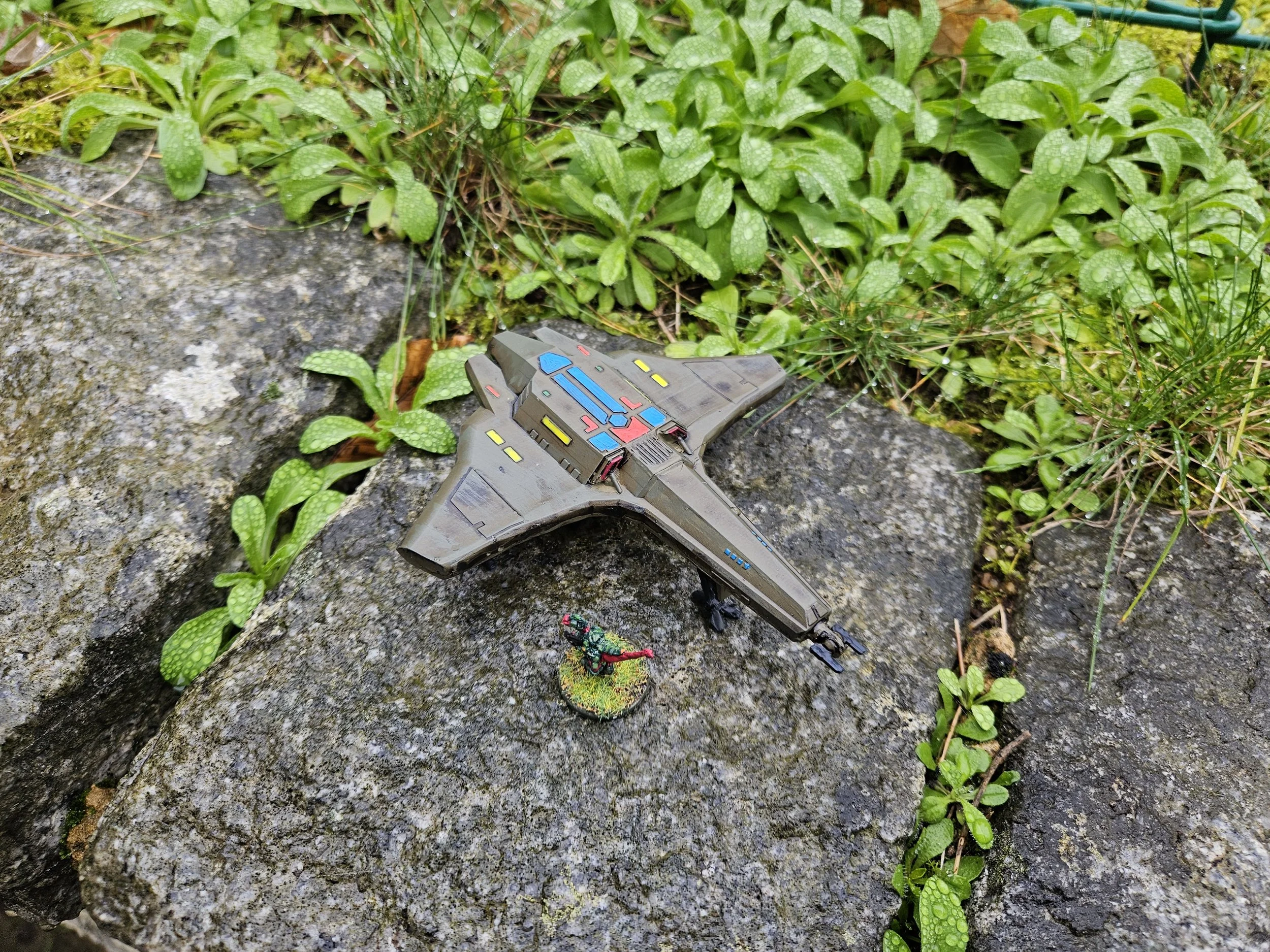 It’s a good bit of kit that comes as one basic piece with a cornucopia of different weapon options to attach to its various hardpoints. Here, I’ve given the Kas two major forward facing cannon, two forward facing rocket launchers, and (a nice touch) two mini backwards-facing cannon to discourage tail-gating!