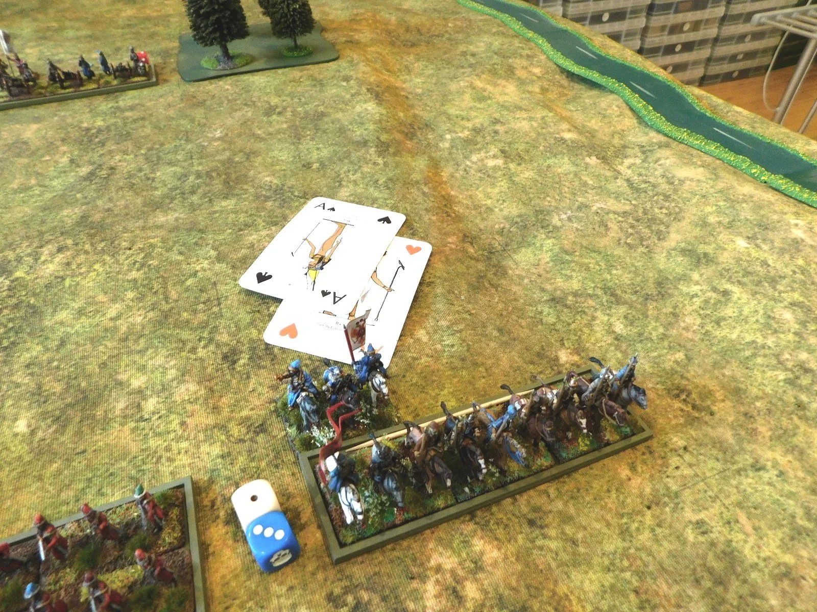 Kavan also wasn’t helped by a run of bad cards, including what you can see in the last picture, above: an absolute dead-cert winning flank charge on the reserve unit holding my left flank foiled by a couple of Aces drawn in a row.