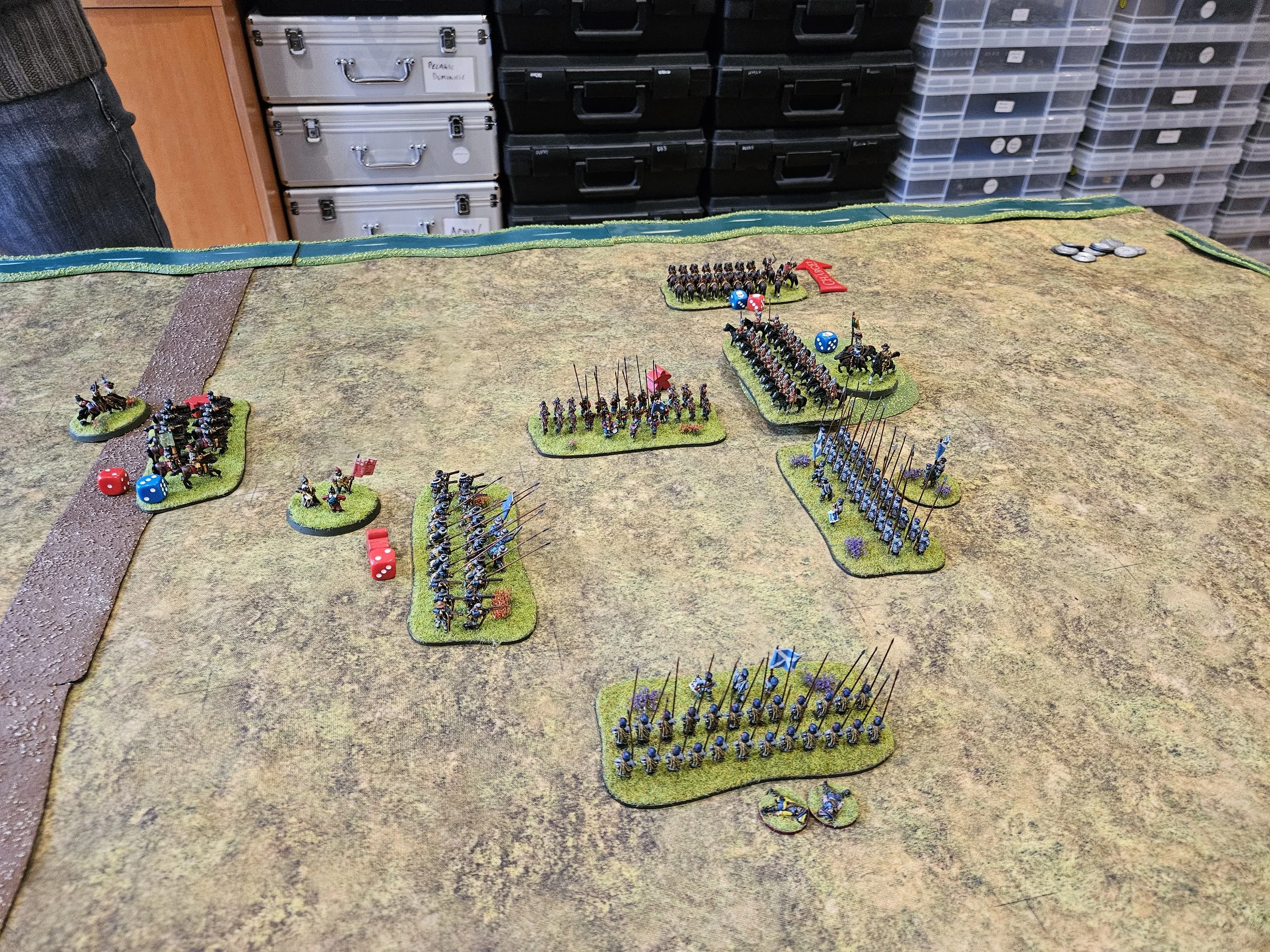 The arrival of the Royalist reinforcements would be determined by me pulling as certain number of Aces from the pack during my turn. Those who have played either TTS or FK&P against me will know that I currently seem to be unable to pull anything else, so it was no surprise when hoardes of Cavaliers suddenly appeared on my left, right on top of me, before I’d had a chance to get very far down the table!
