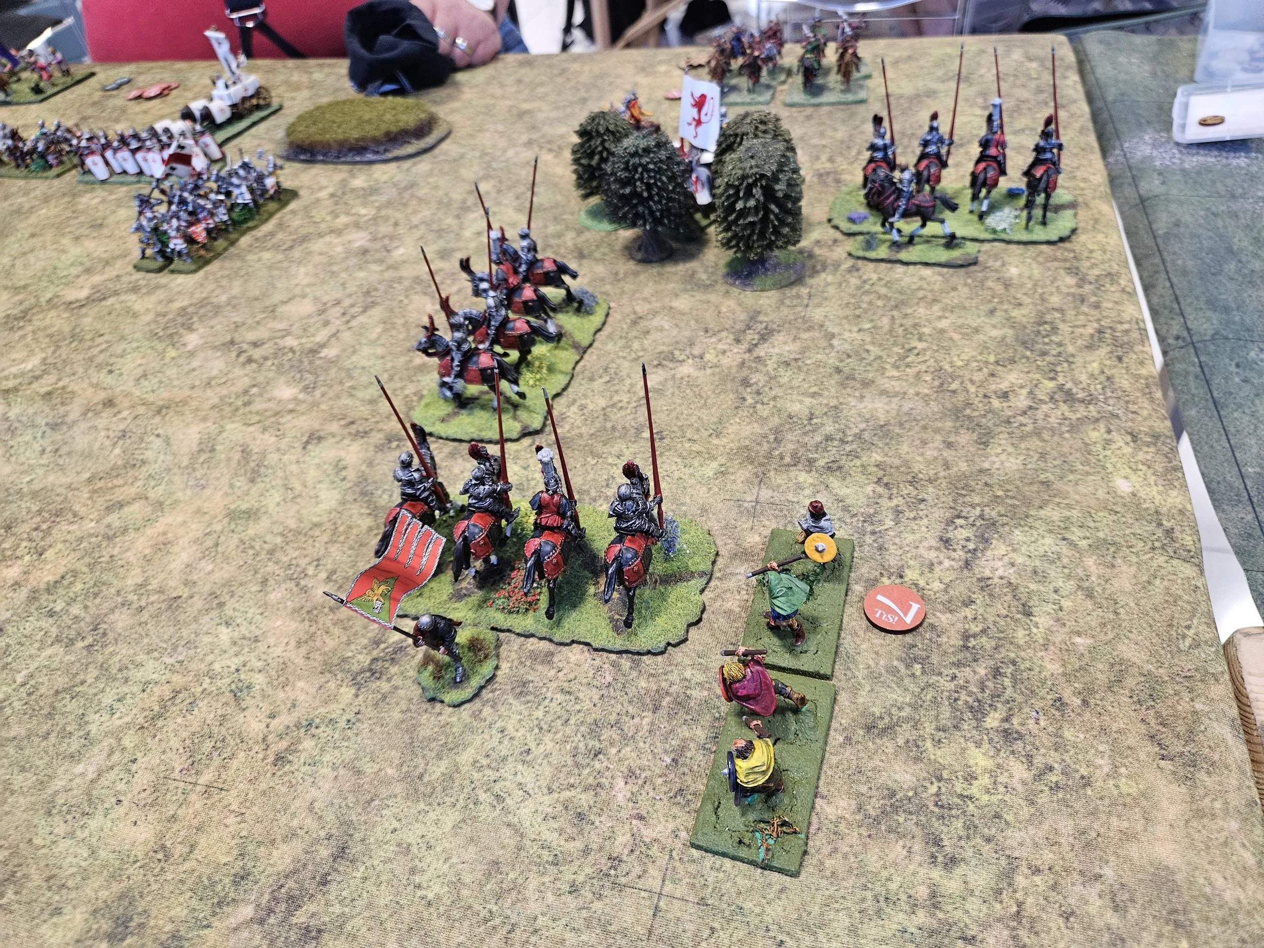 Although technically a different army to mine (an Early Italian Condotteri army versus my Later one, and from Florence as opposed to Venice), Nigel’s force was actually/obviously quite similar to mine, with the contemporaneous nature of the clash promising an interesting game.