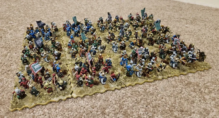 Nearly all my painting time was taken up with creating the various Arabic armies of medieaval times: from the Arab Conquest to Ayyubids to Fanatical Berbers. The vast majority of the figures used were 3D prints from Red Copper and 3D Breed: beautiful figures that paint up really well. Overall I painted 618 Arabic infantry, 122 mounted troops and three camps.