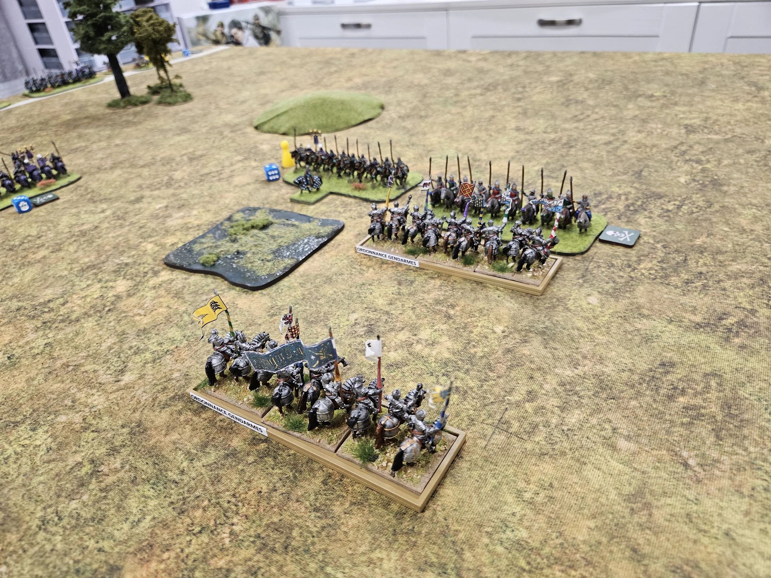 Not a game with a huge amount of tactics in it: the Burgundian missile-fire was exceptional throughout right across the army, which meant I was generally charging disordered units when it came to melee…and there’s nothing a Gendarme likes better than riding over disordered troops!