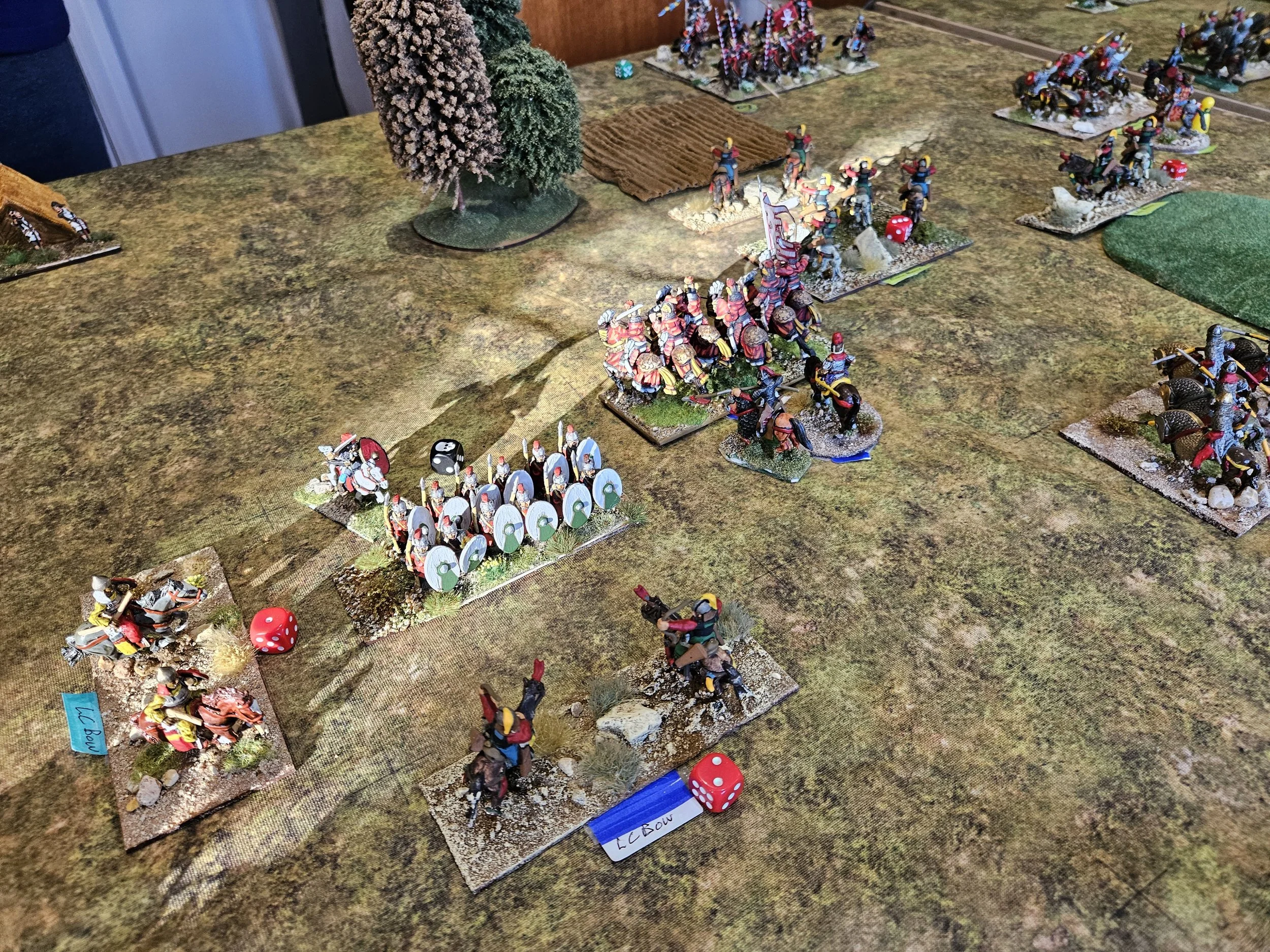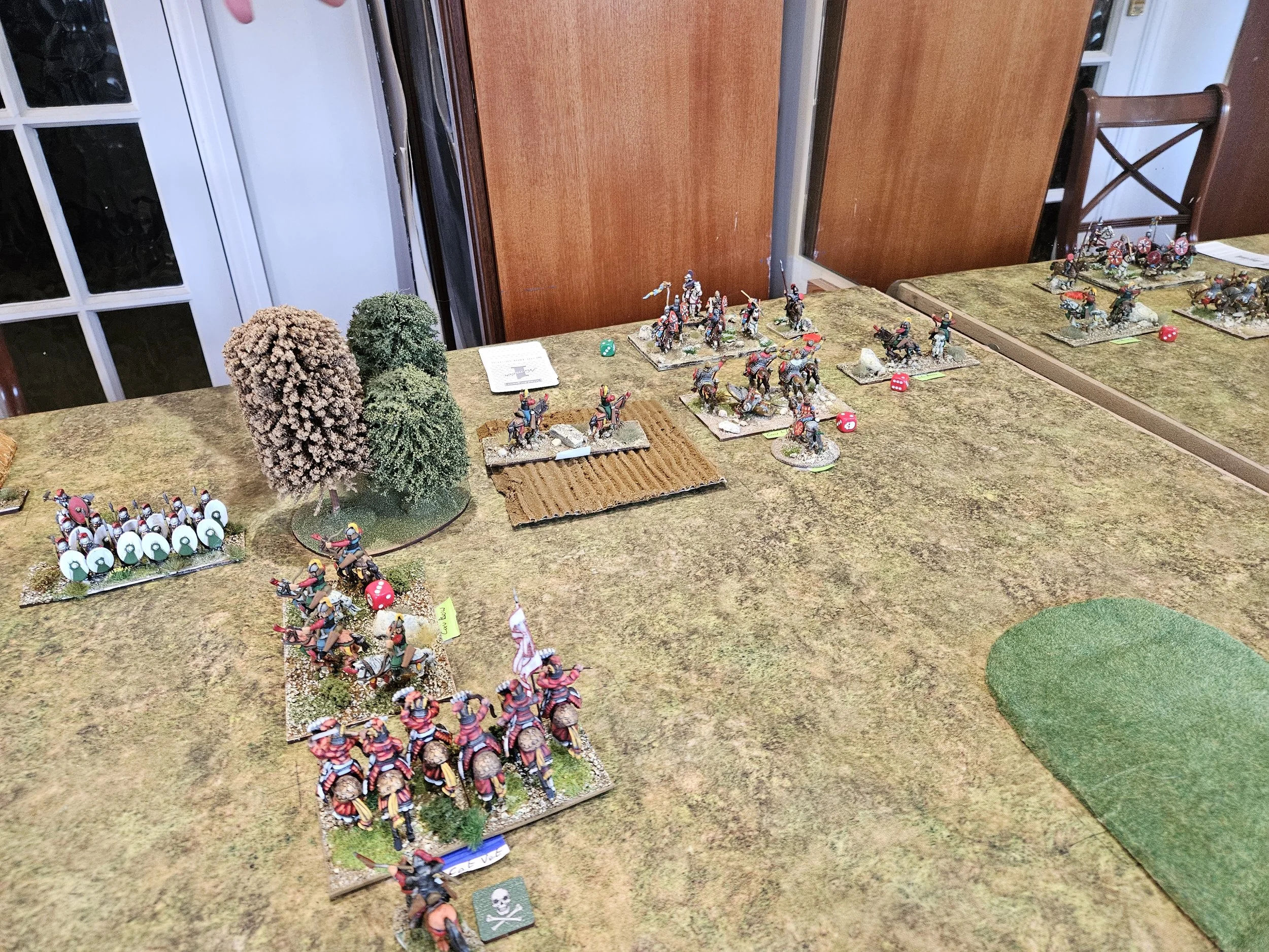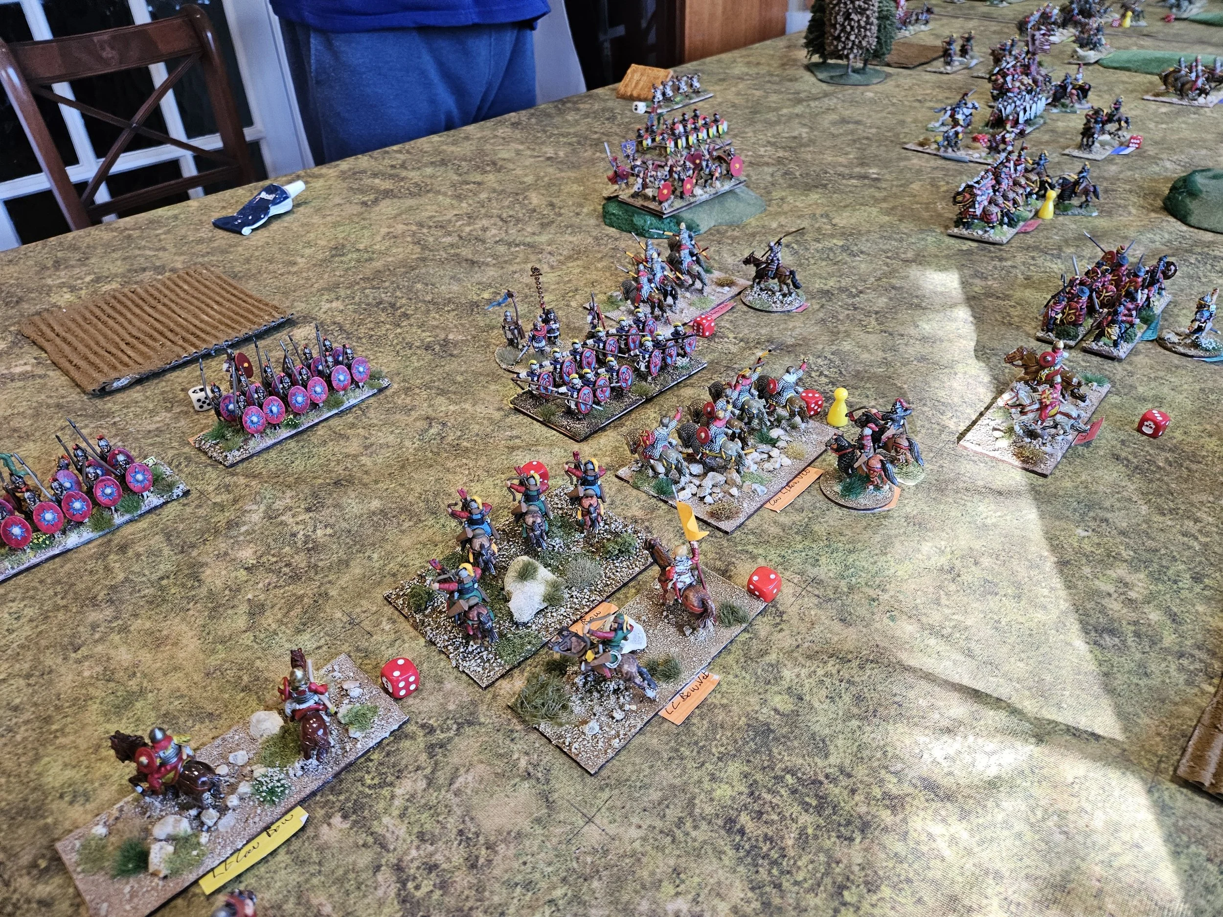 Keen to avoid the consequences of my cunning plan, the Romans pulled back on the right. In the centre, a hail of arrows hit their steadily advancing infantry, with light cavalry harassing their flanks.