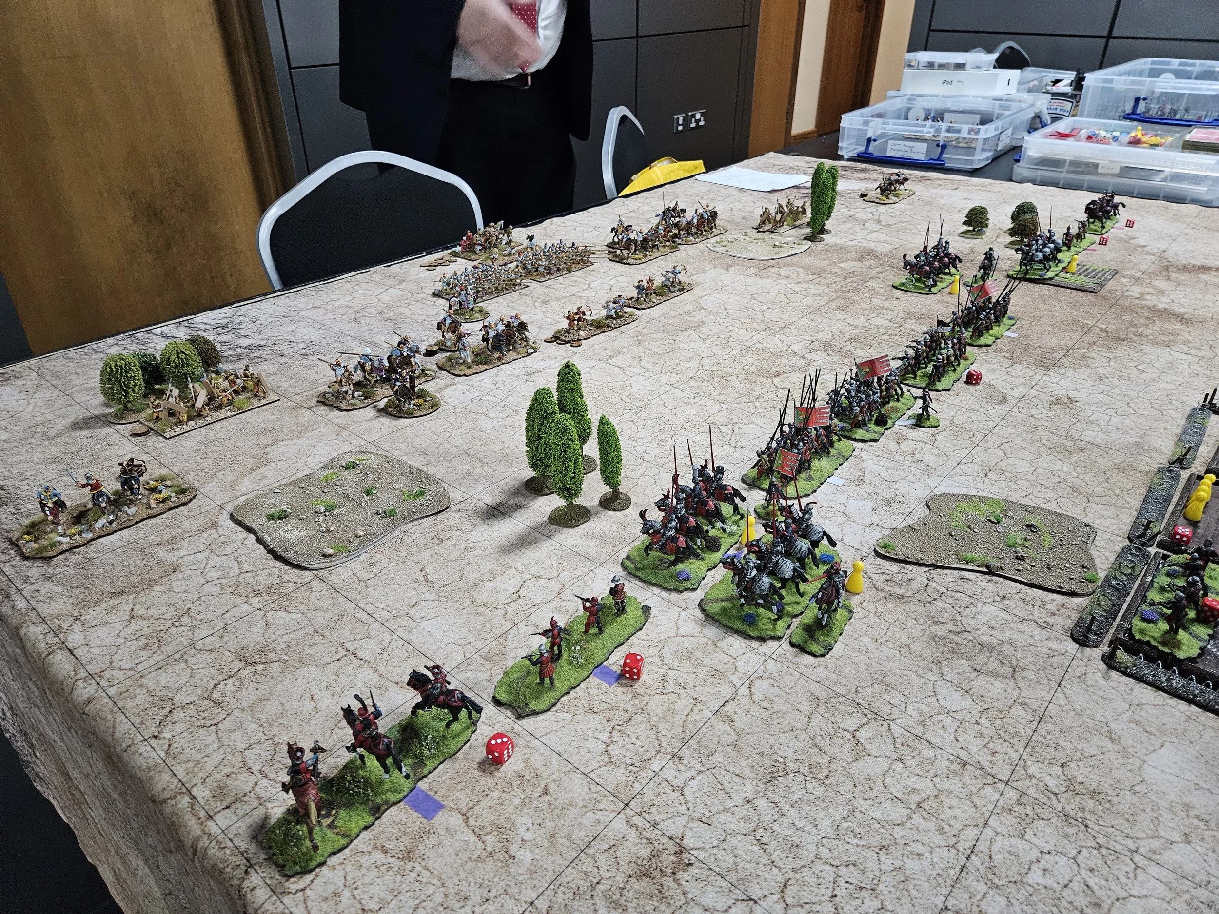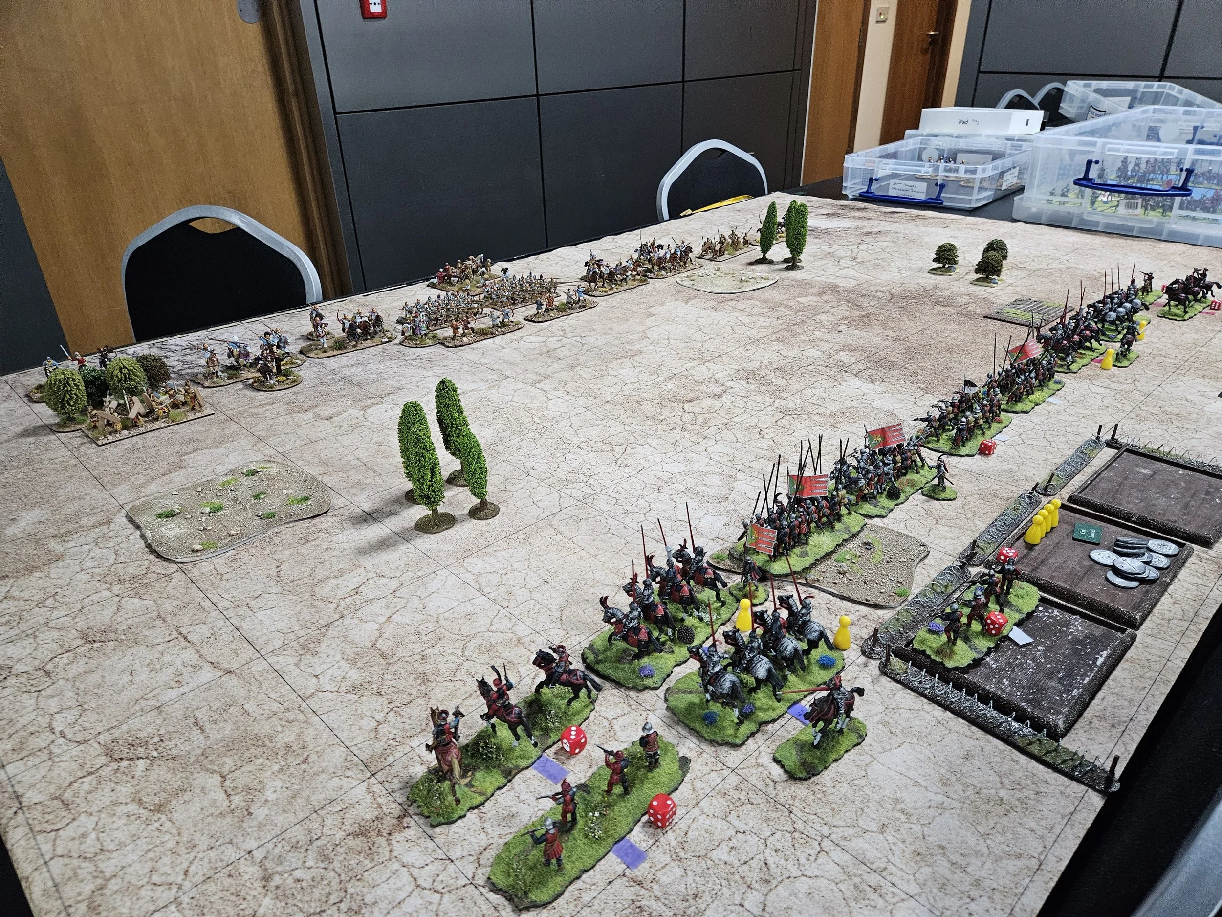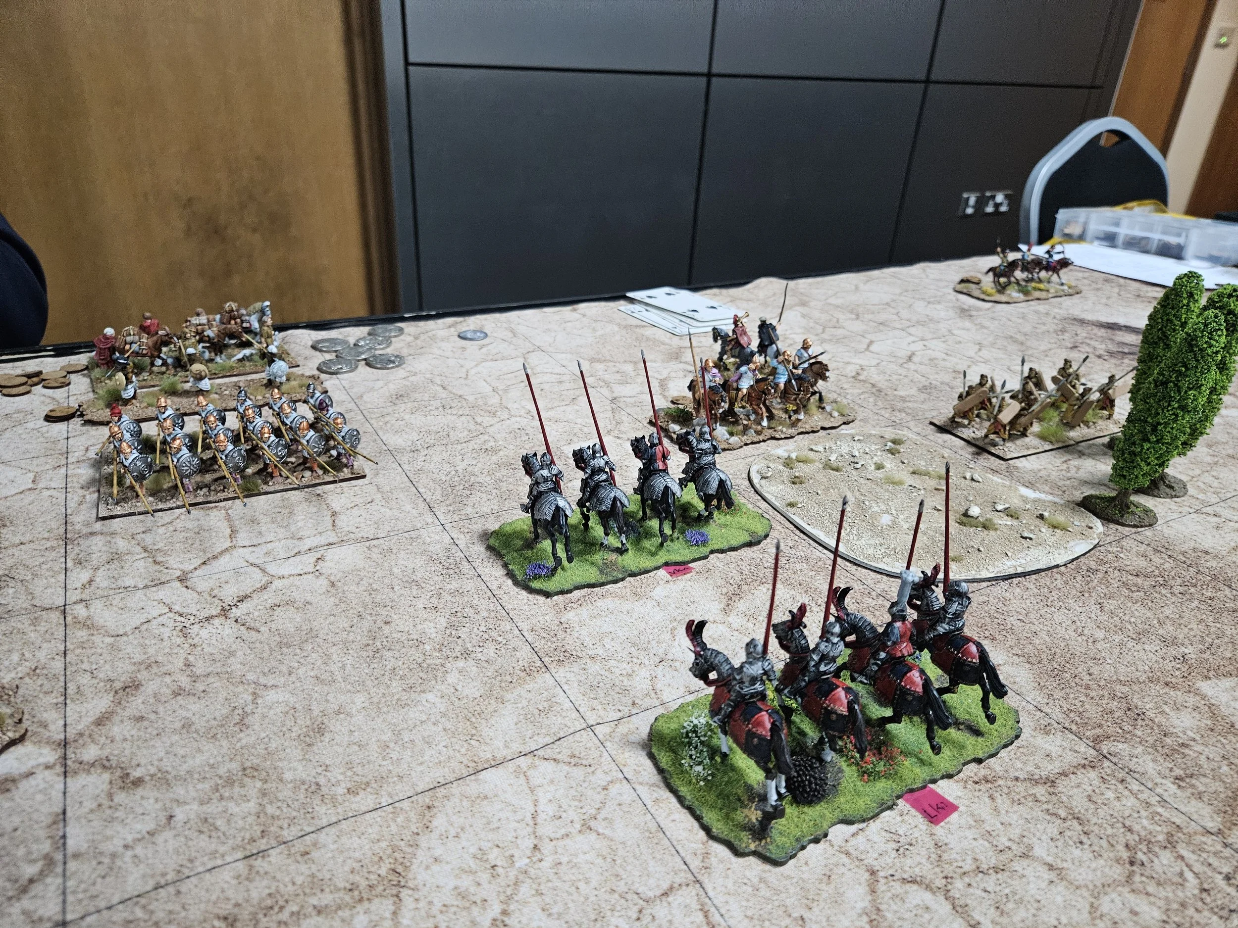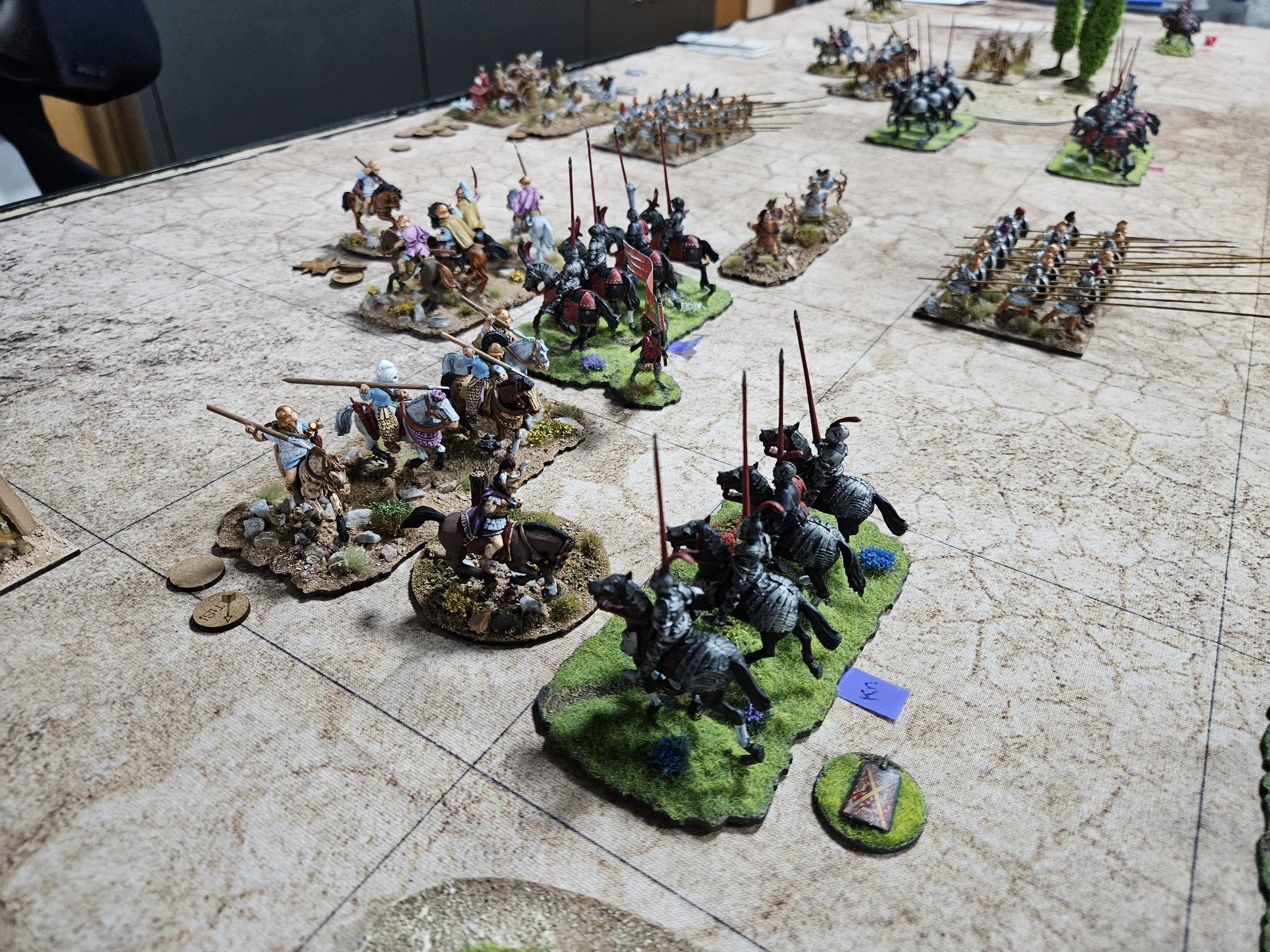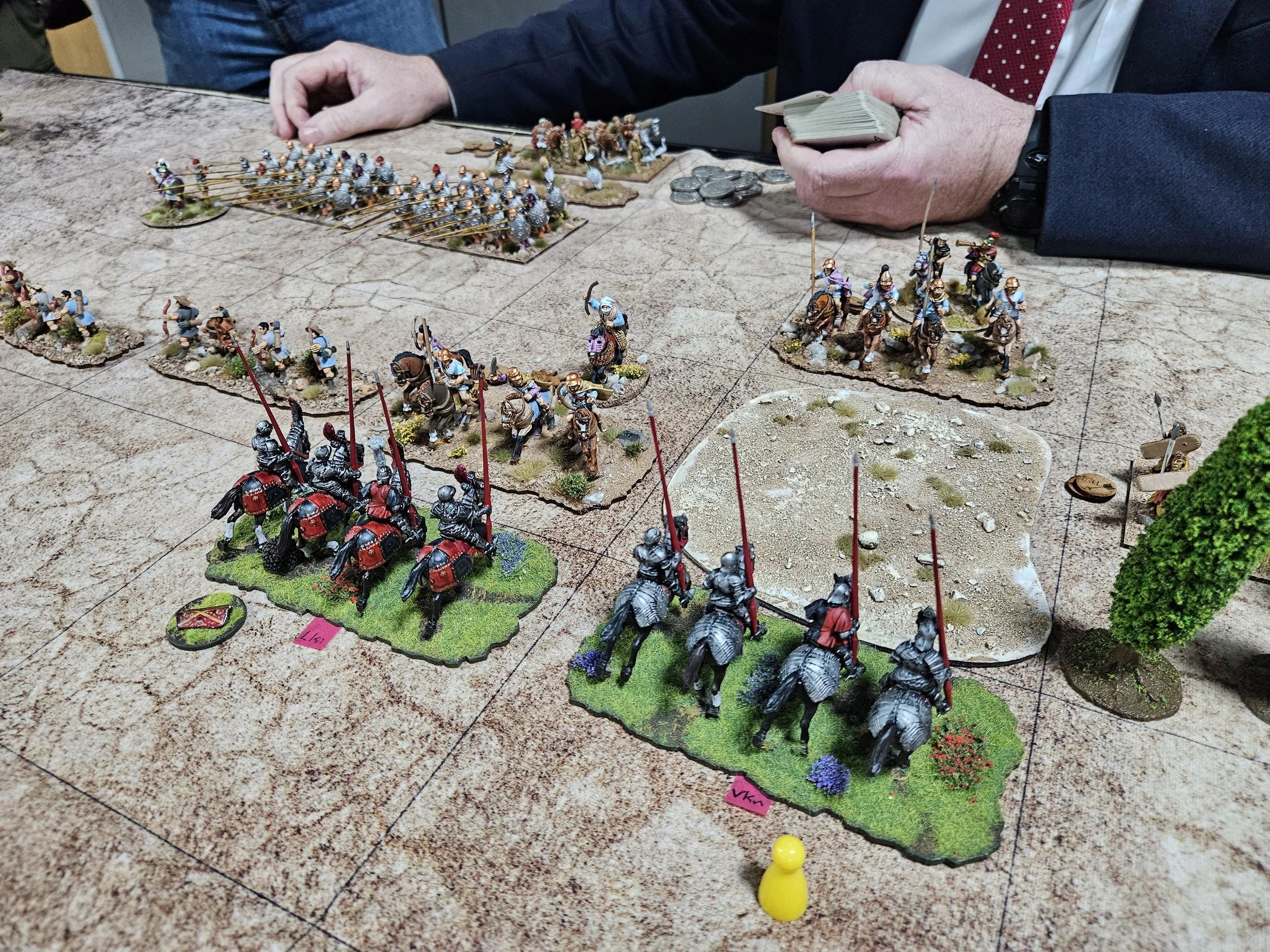 /It’s late afternoon the Friday before the Welsh Open To The Strongest tournament at Firestorm Games in Cardiff. There’s beer to be drunk and a curry to be eaten later, but now there’s just time for a warm-up game between my Venetians and Mike’s Graeco-Bactrian (GB) successors.