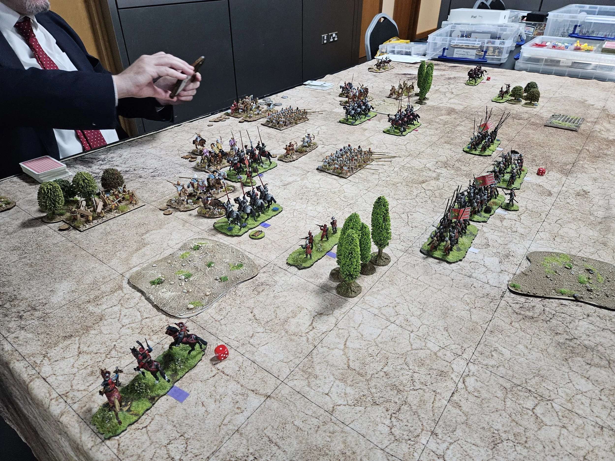 [Mike had obviously heard that I was a VIP player as he had taken the trouble to dress very formally for the occasion. Although not featured in many of the photographs (it’s all about the figures, man) you may note his very natty suit and tie in the background of some of them. My thanks to him for making the effort: much appreciated!]