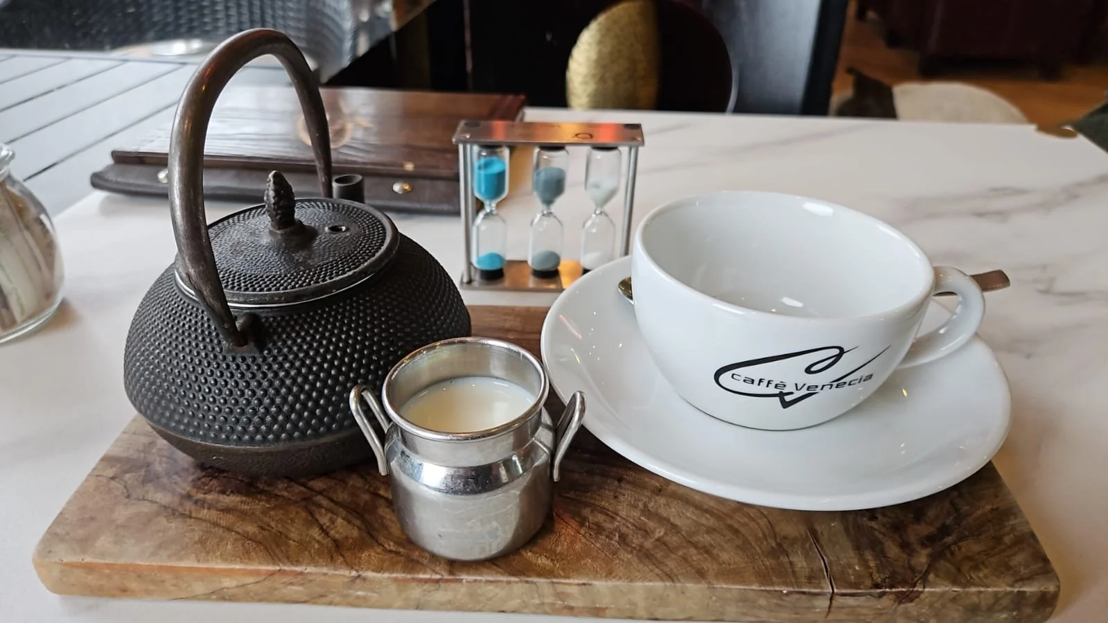 I liked Huddersfield: from Greggs on the main drag at six-thirty in the morning for a ‘sausage and bacon bap with red’ right through to Travelodge late at night, everyone was very pleasant. Lots of places to charge your car as well. Geoff and I met at Cafe Valencia, just around the corner from Gemini Games, the venue for our battle, where they bring you a proper pot of tea, with an egg-timer to make sure you let it mash for long enough.
