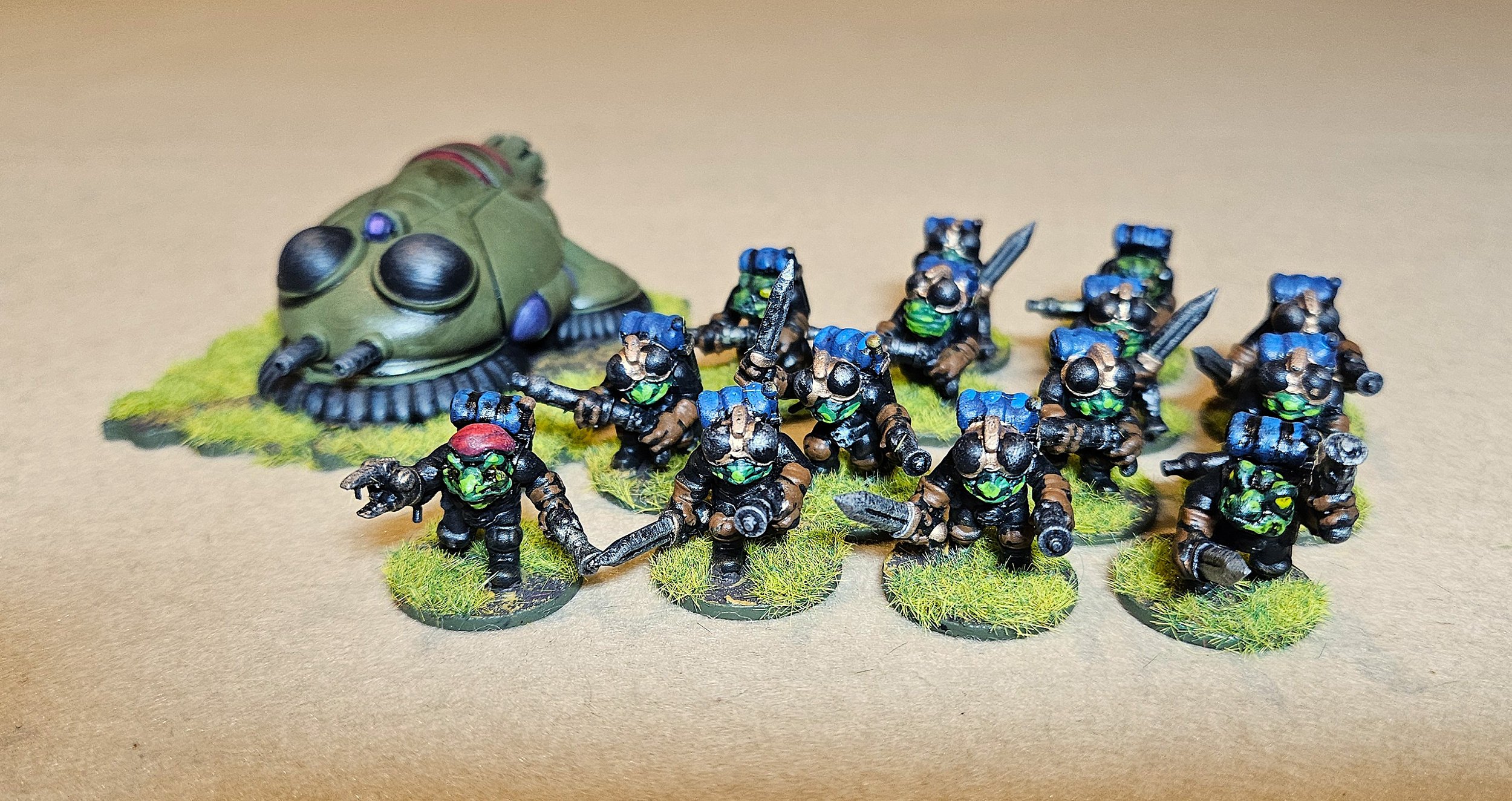 I’m still working my way through the big order I received from Trilaterum just after Christmas. Next up were some reinforcements for my Aphids (scifi frogs): the Gekta (scifi toads). These were the first additions to my Aphid force since 2016, and I bought the standard army box set for $30.