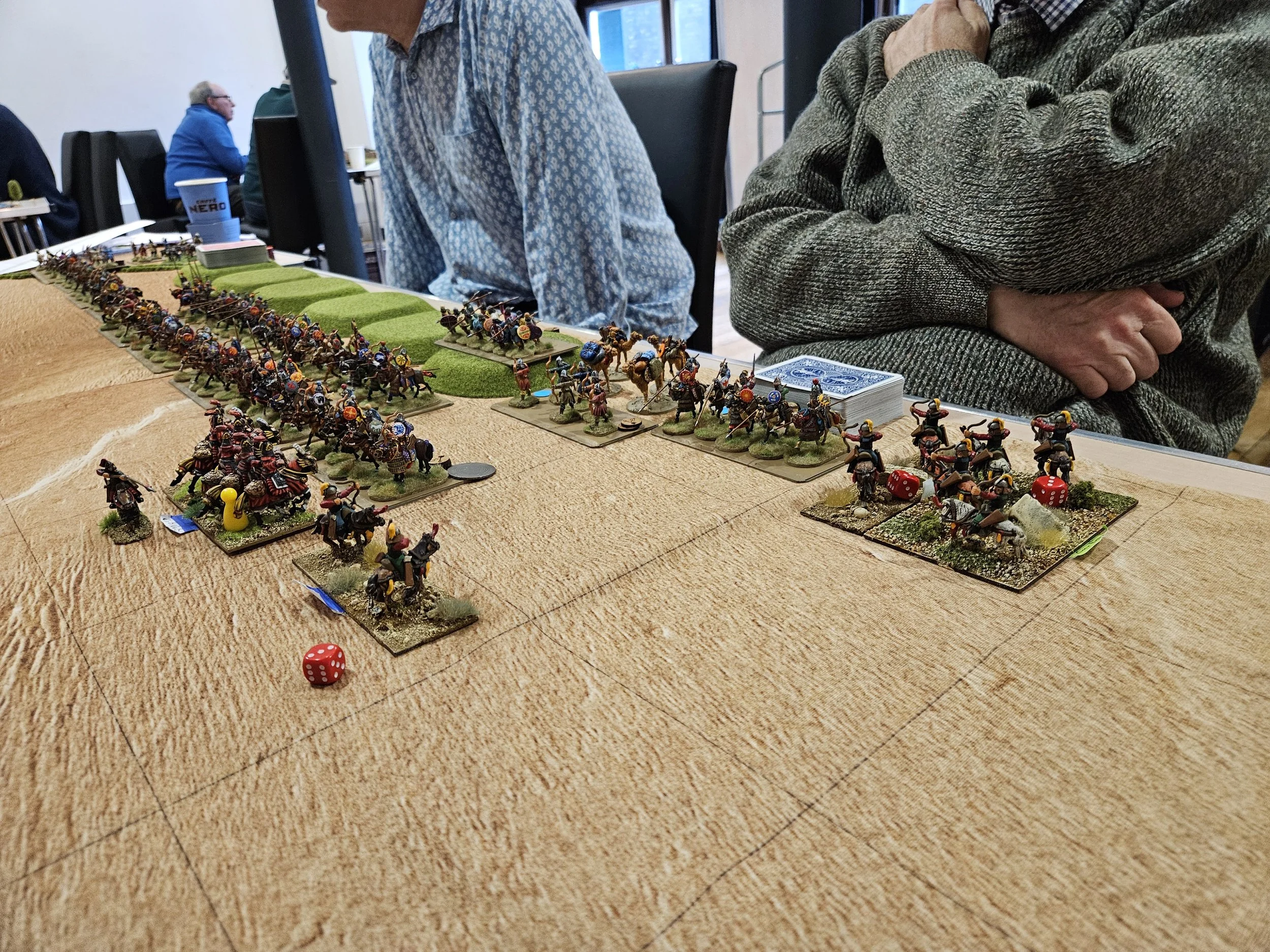 /Peter’s and my first game of the 2025 Two the Strongest Doubles Competition (actually taking place at the end of January 2026 due to scheduling problems) was against the formidable pairing of Simon Miller (writer of To the Strongest) and Ian Notter (who does the photography for the rulebooks), commanding a force of Middle Sassanids.