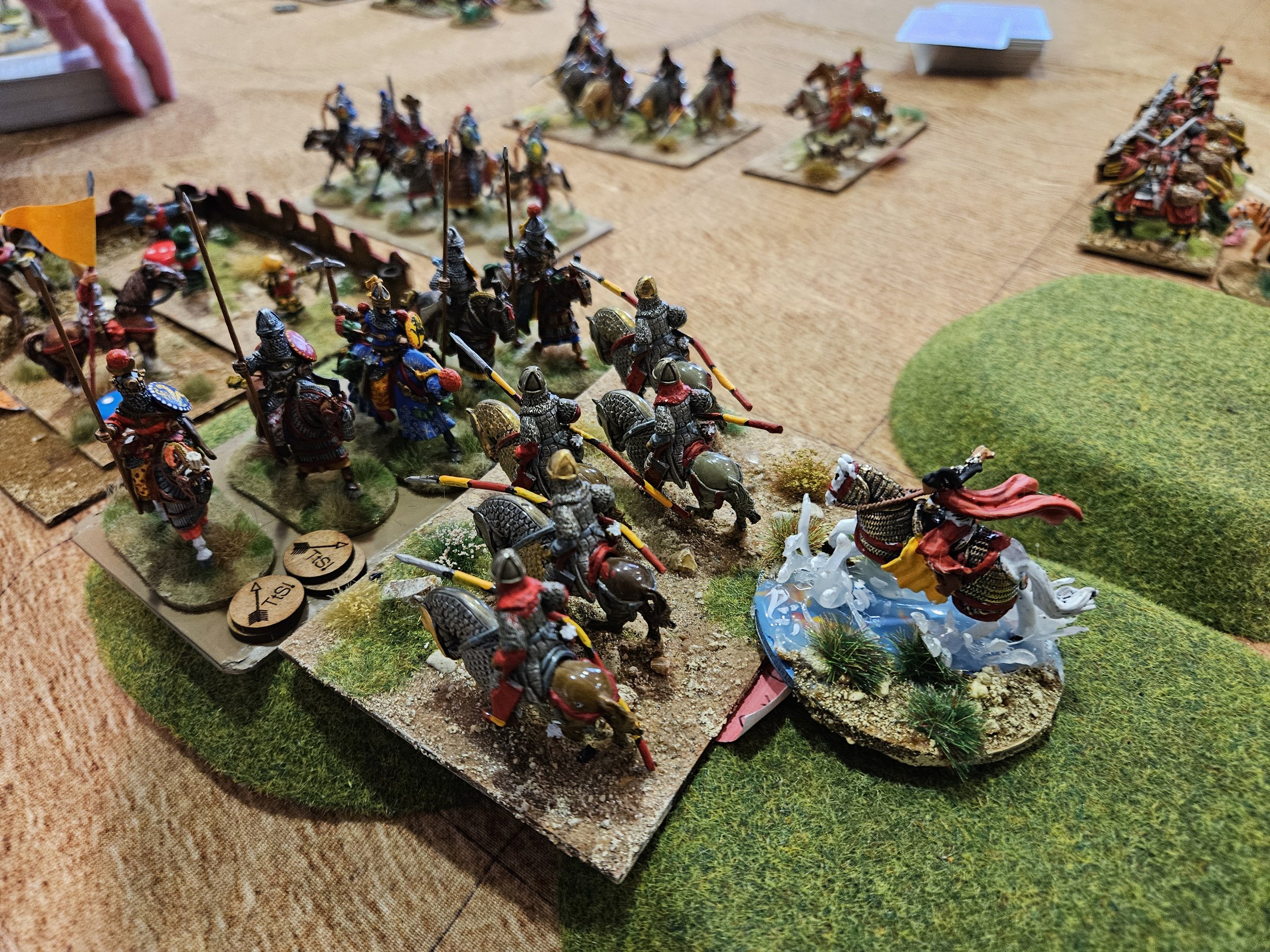 There was also a general melee in the far left corner of the table (gallery below, bottom right) where various units of cavalry from both sides clashed over the small stream there.