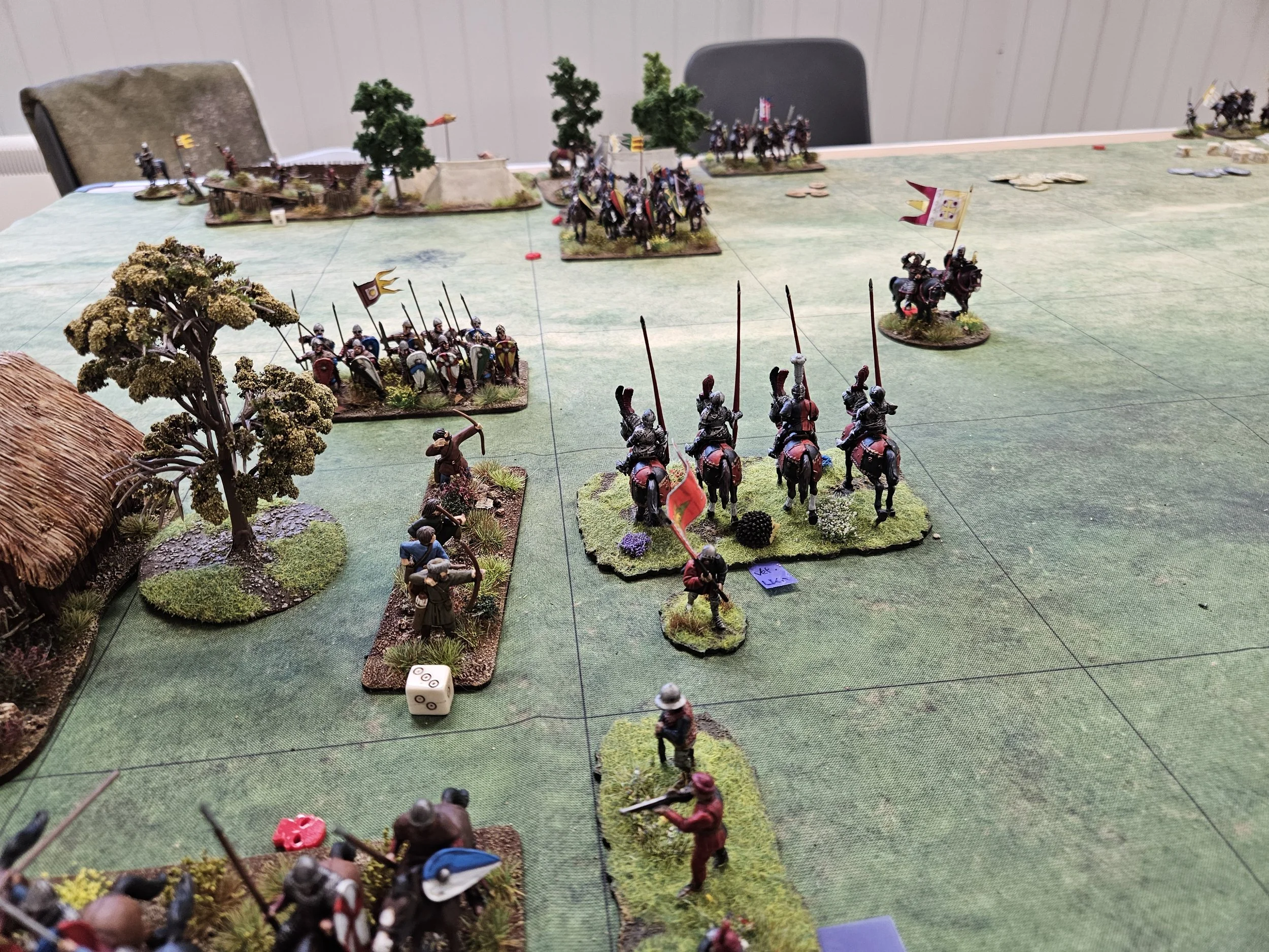 Let’s start on the right, where I then repidly lost the Later Knights and was forced to withdraw right to the table’s edge to regroup and send infantry over from the centre to help.