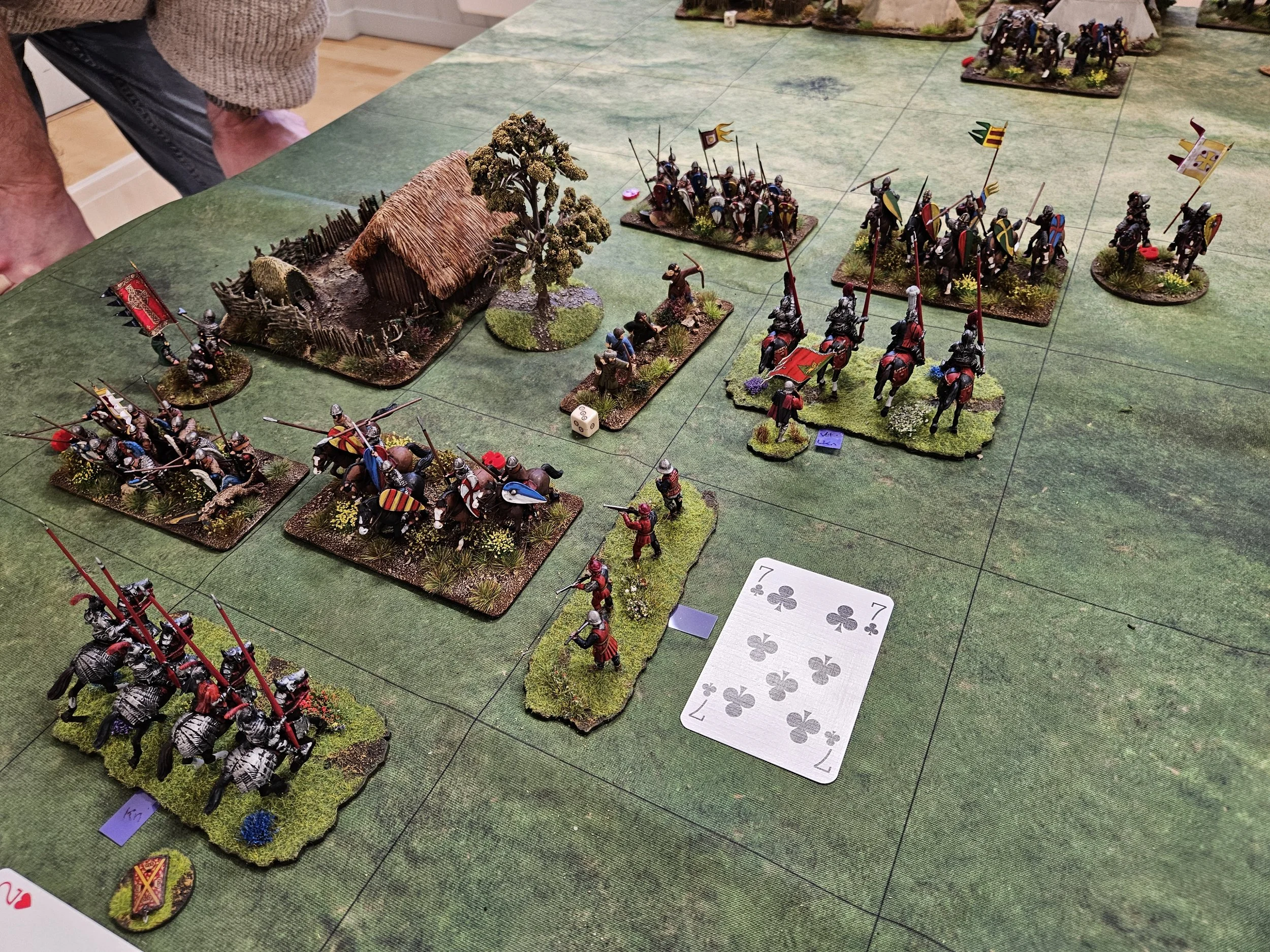 I honestly thought the game would end after about three turns as my Knights crumbled and the Norman army lapped around both my flanks, but a great fight back ensued until the Venetians were within Ames Ace of victory: just failing to secure a win mainly due to some outrageous saving cards from Matt, probably deserved as his officers had fallen like flies earlier in the game.