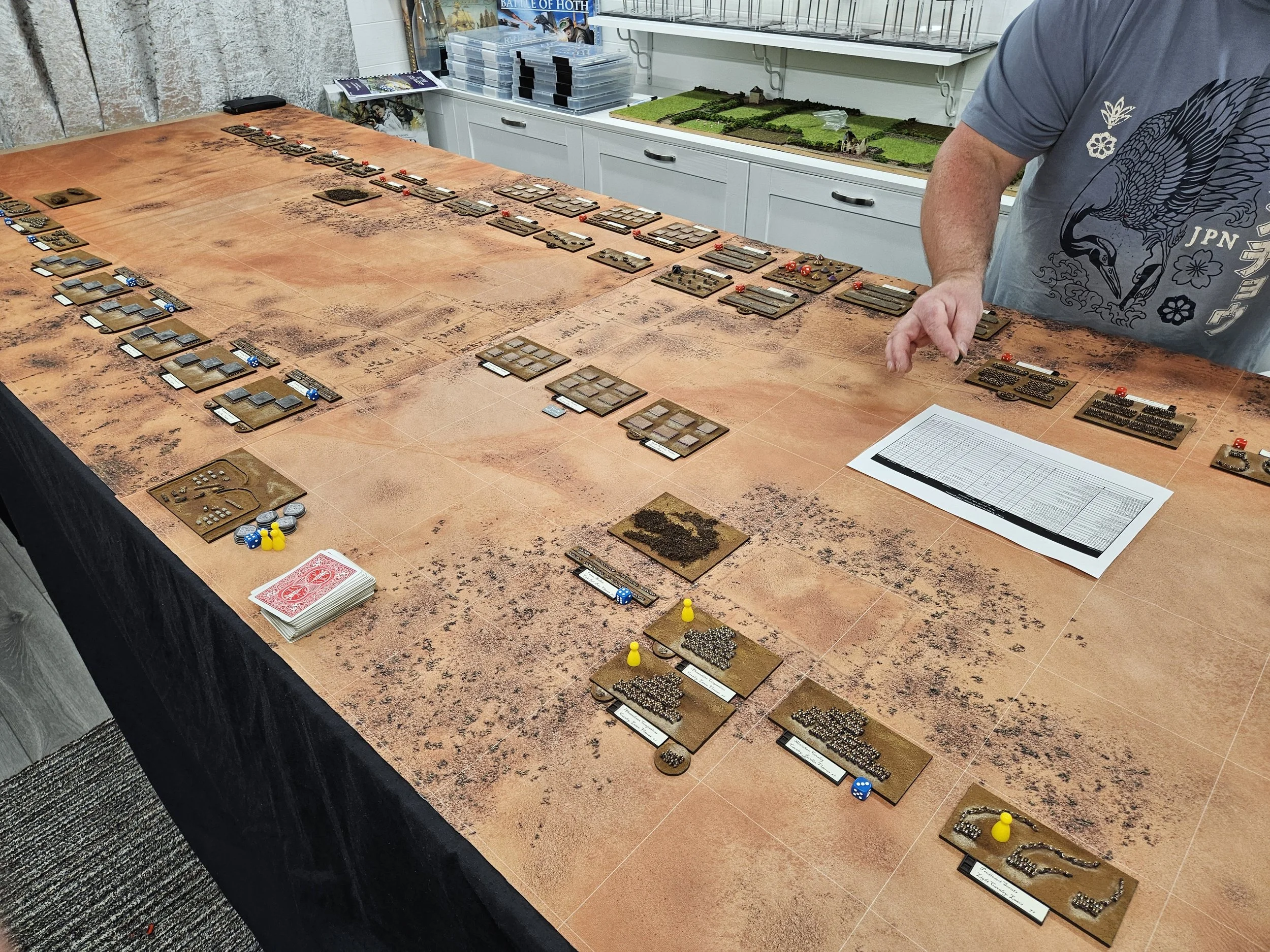 I must confess that I can’t remember what gave me the final coins I needed to win, but I must have broken one more of Si’s units which, combined with coins from Si successfully rallying on an even card (the boot, or rather caligulae, were on the other feet in this game: one of the reasons for my defeat in our last encounter was me losing four coins to rallying…Si lost at least two the same way this game) and the odd light killed gave me the victory.