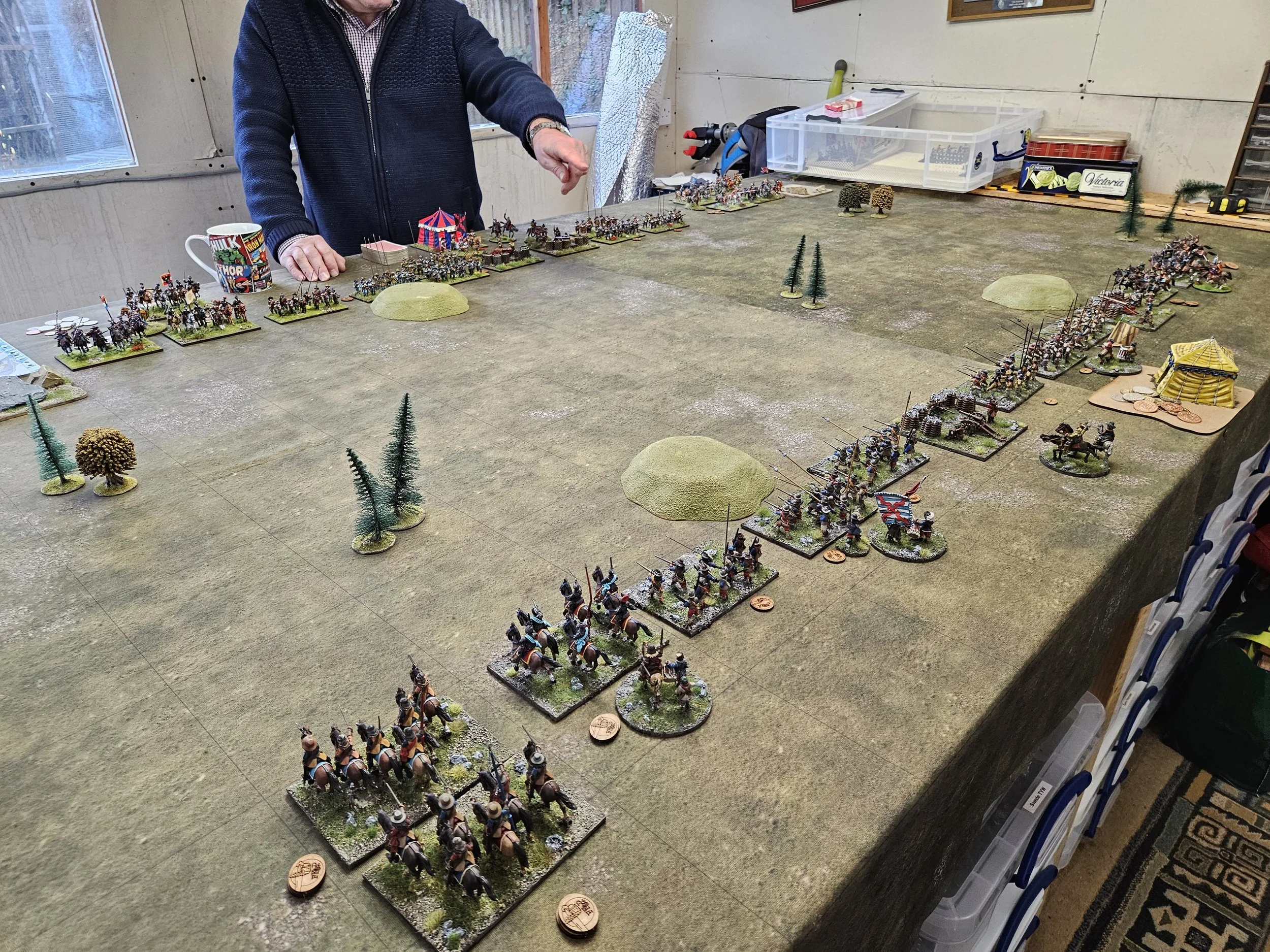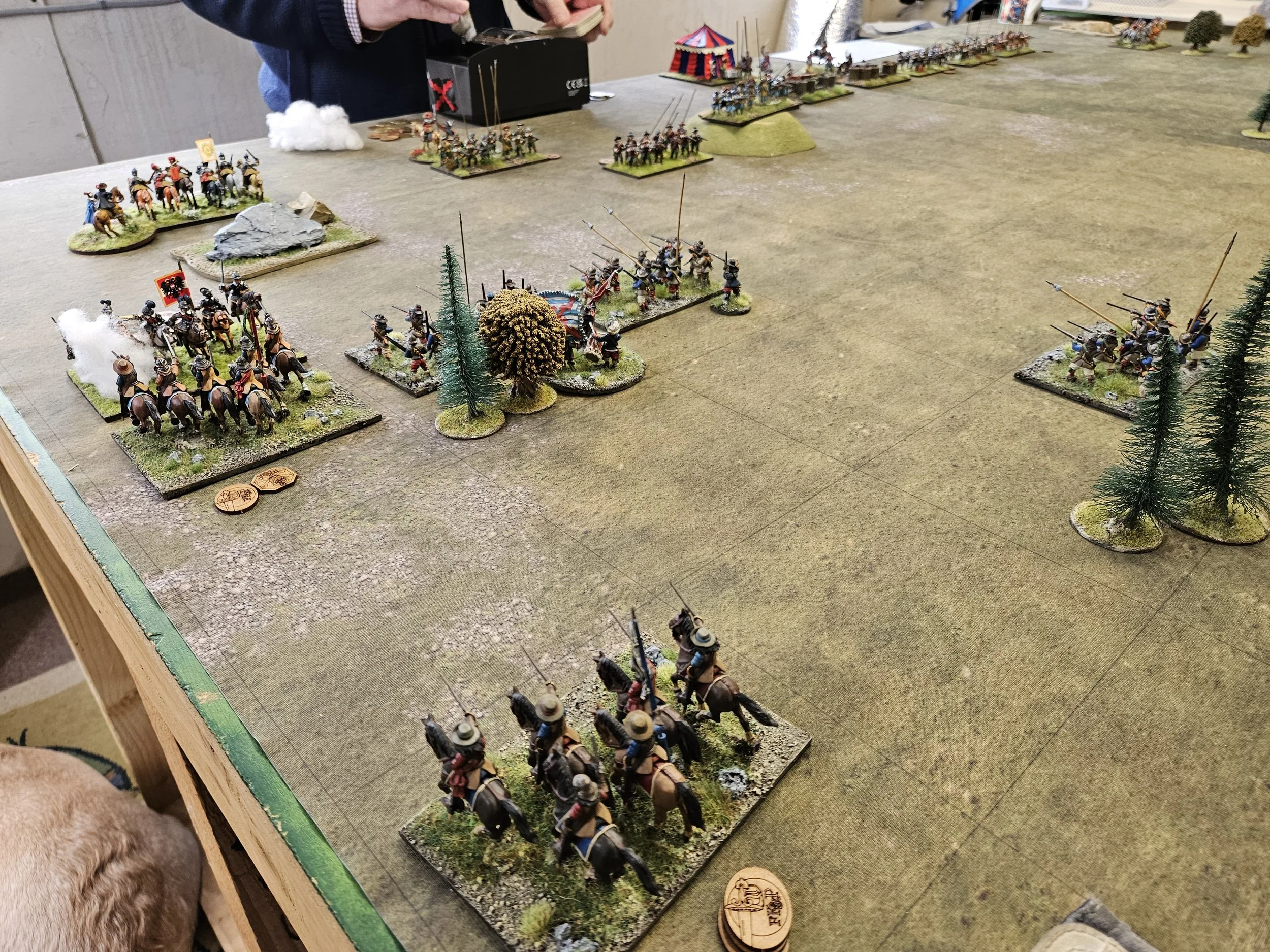 My assumption proved to be correct, and soon my shock cavalry, supported by an infantry command, were facing off against John’s lighter, “shooting” horse. This was just what I wanted, and I was sure that soon my cavalry would just ride over the effete Imperialist donkey-wallopers, leaving them and my infantry in prime position to roll up the enemy flank.