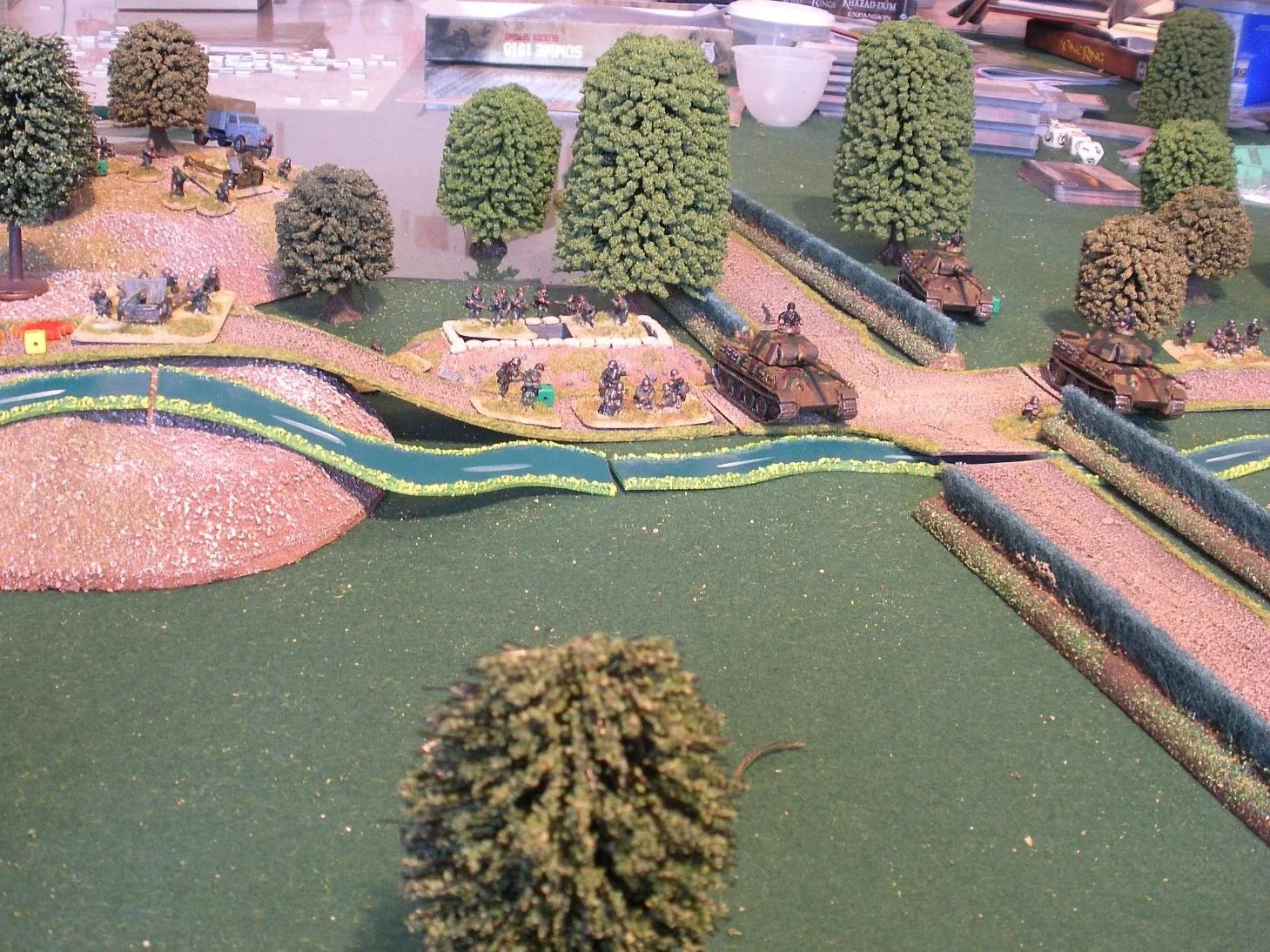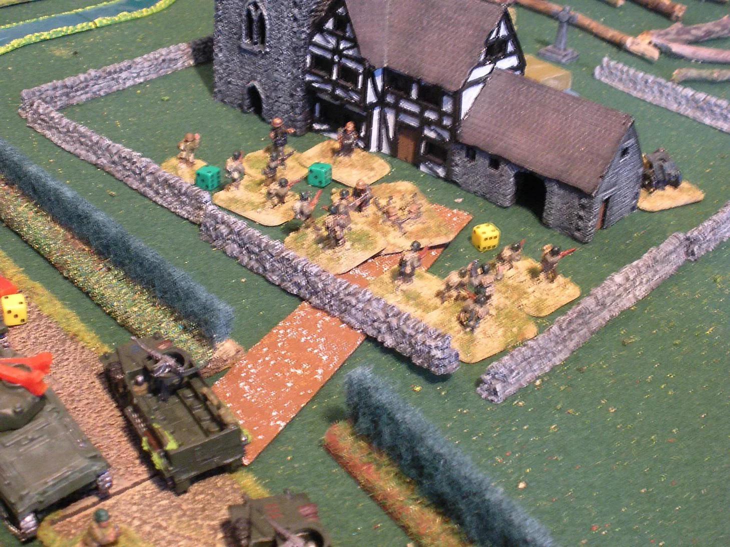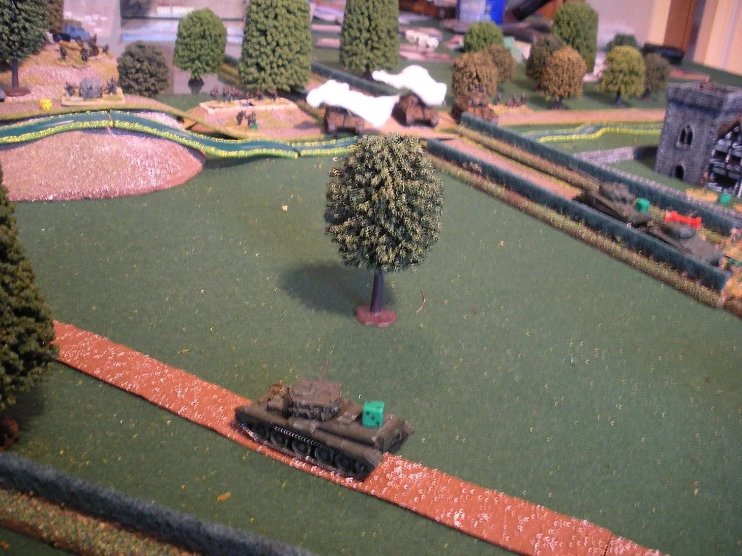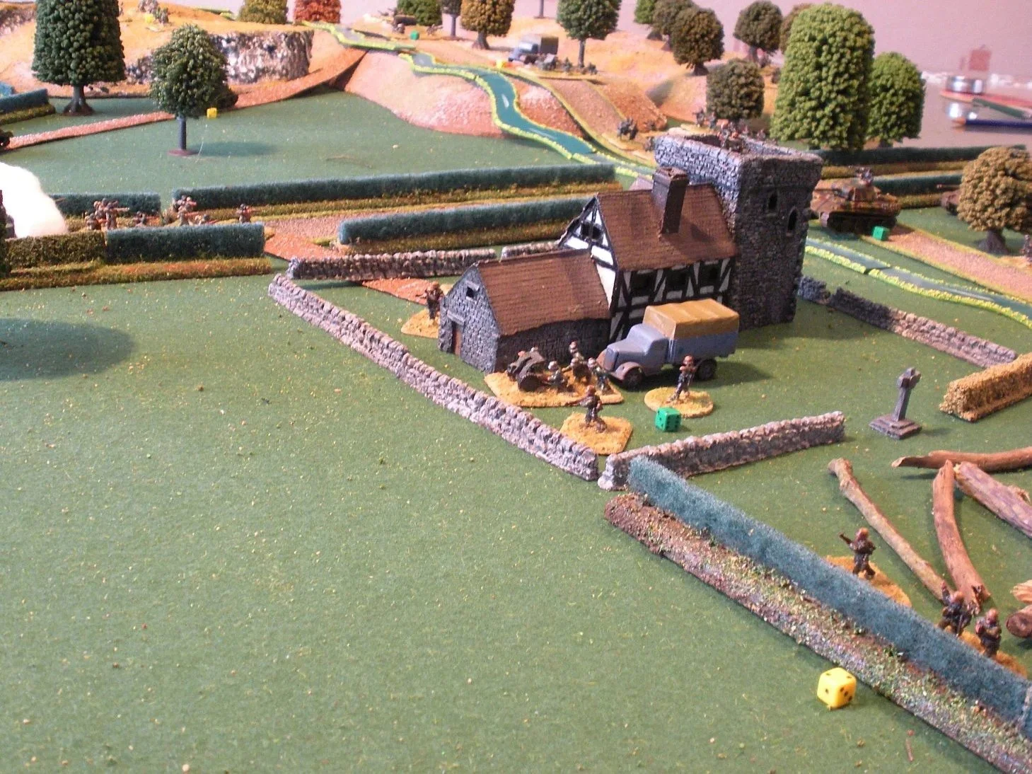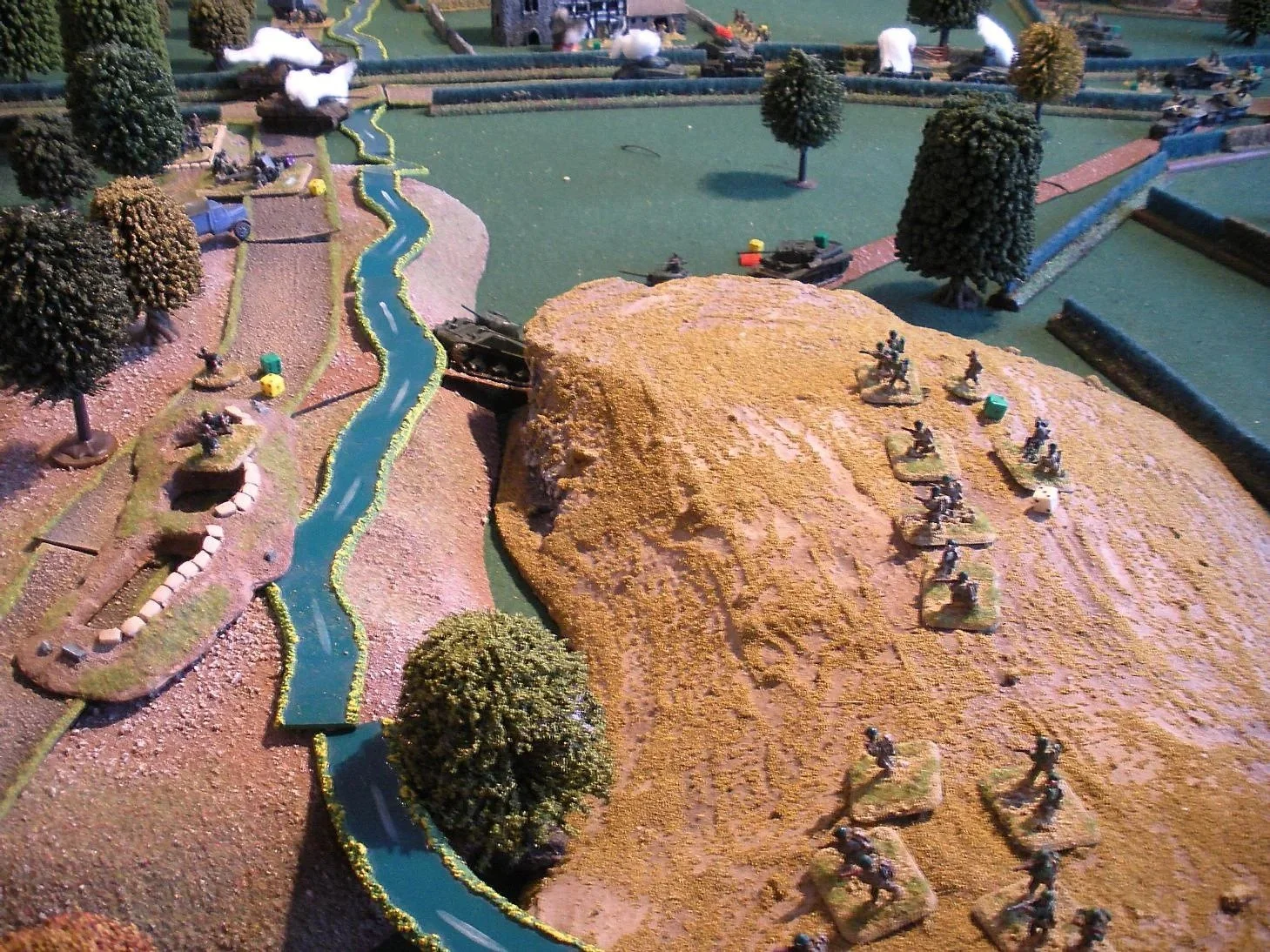 The photographs below show the end position of the forces. All the Germans had left were a badly damaged Panther, one infantry gun and one section. These retreated to their next defensive position.