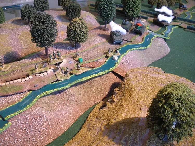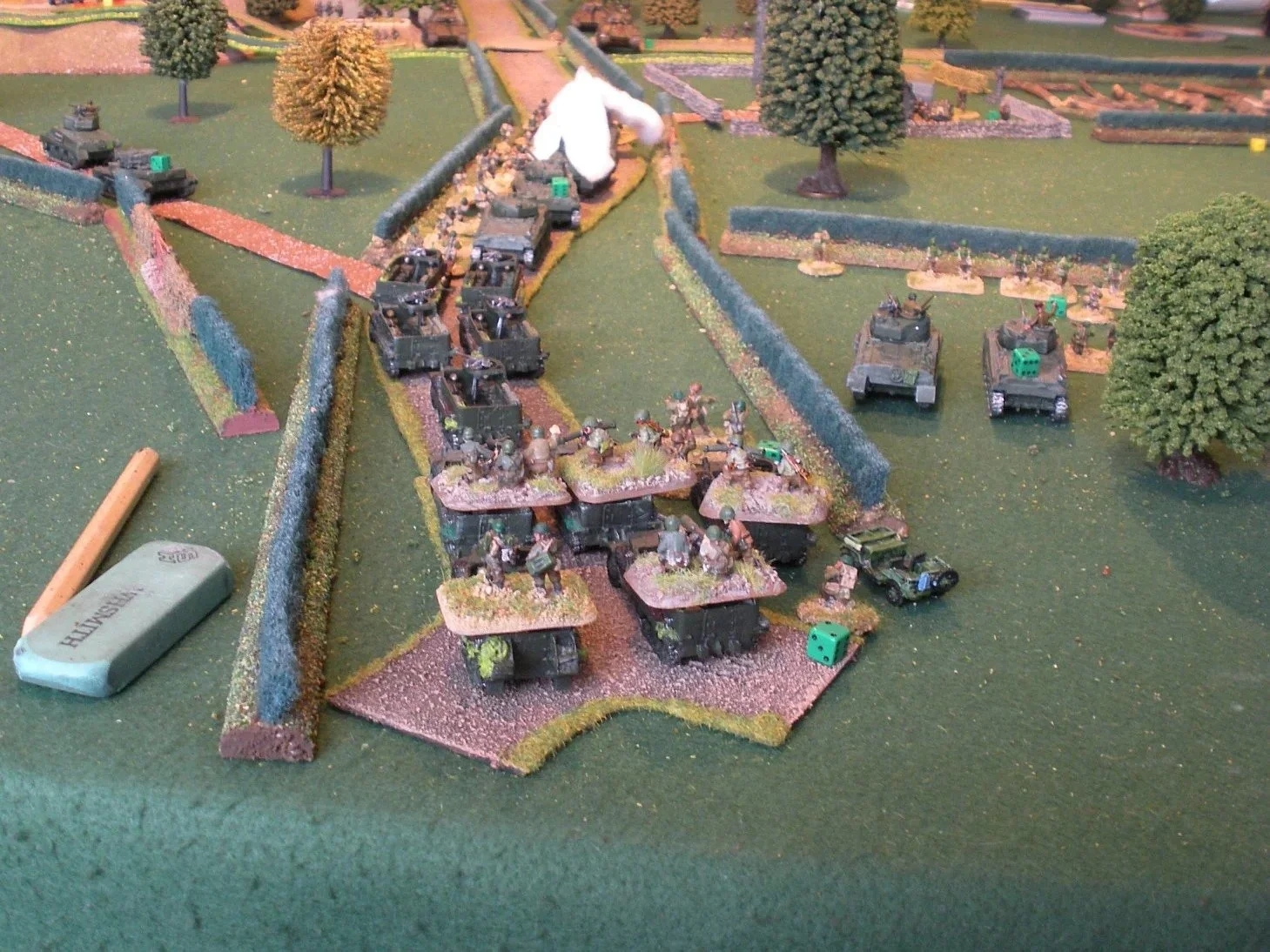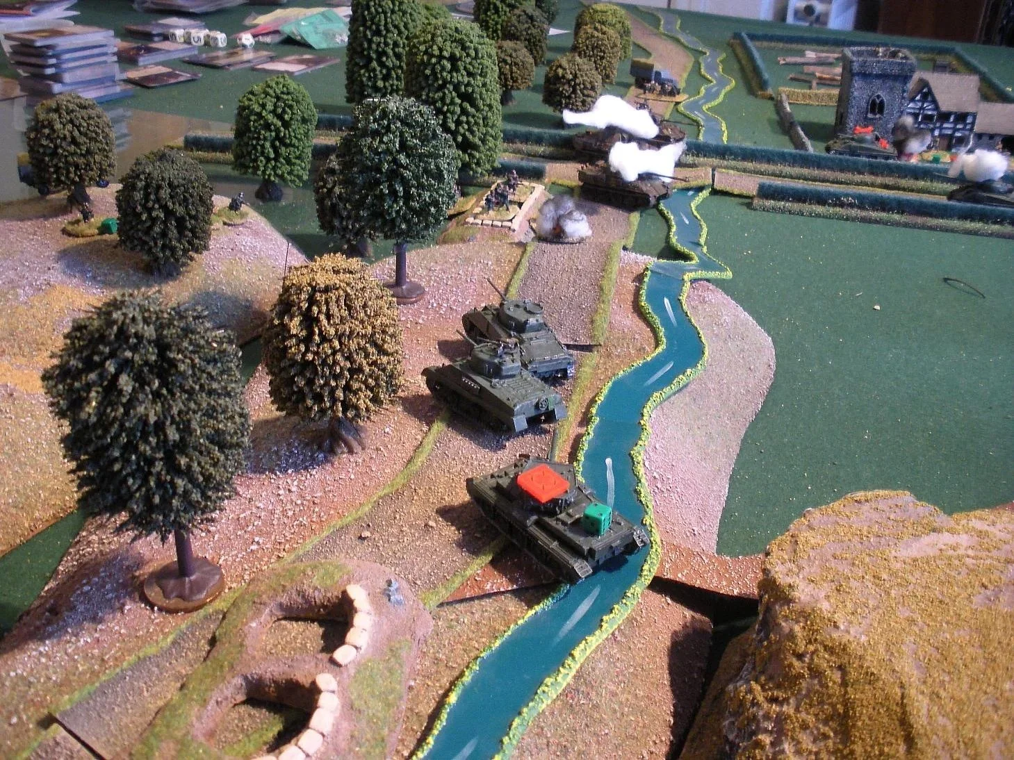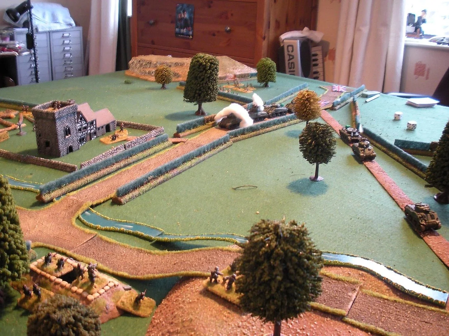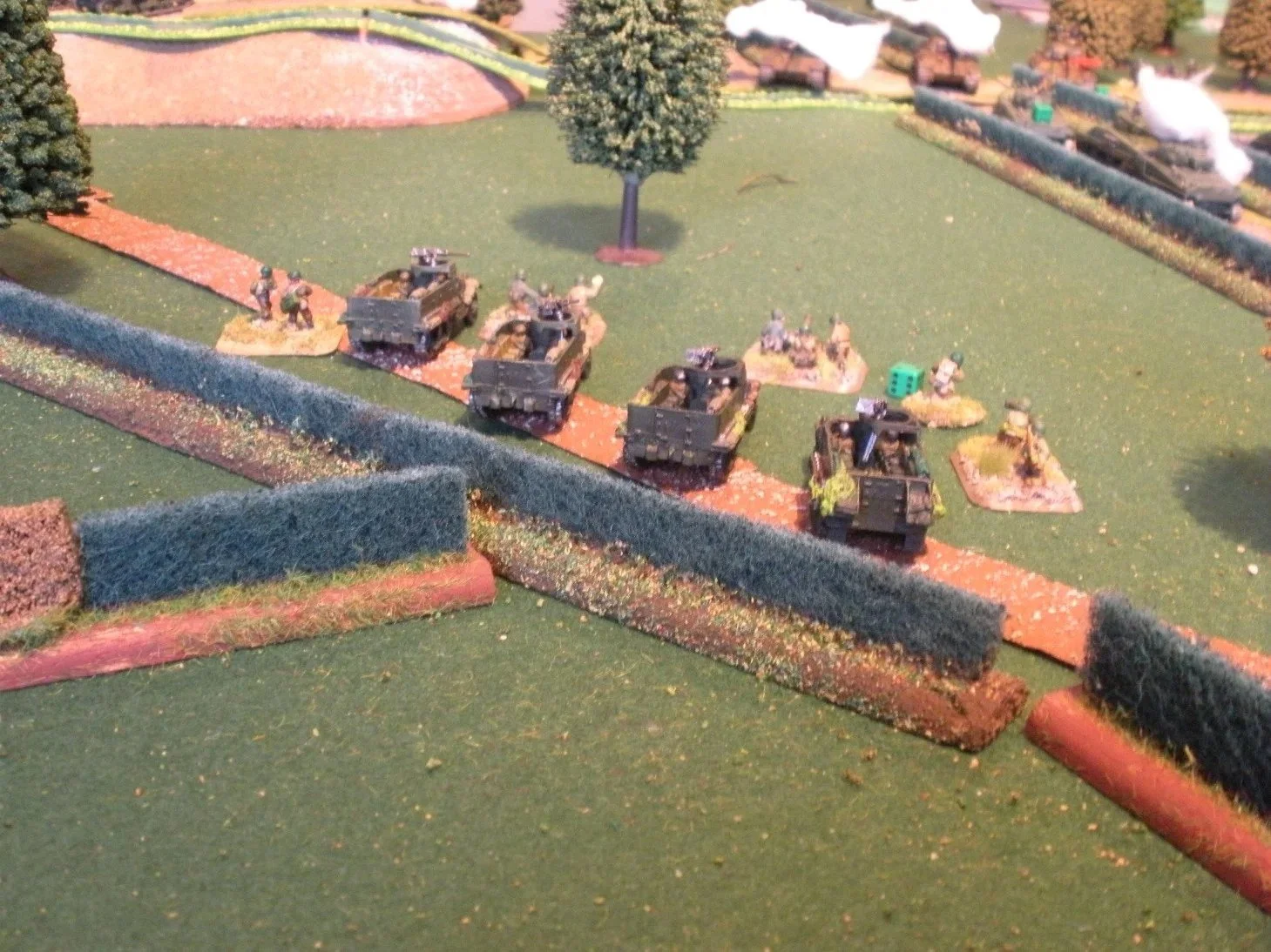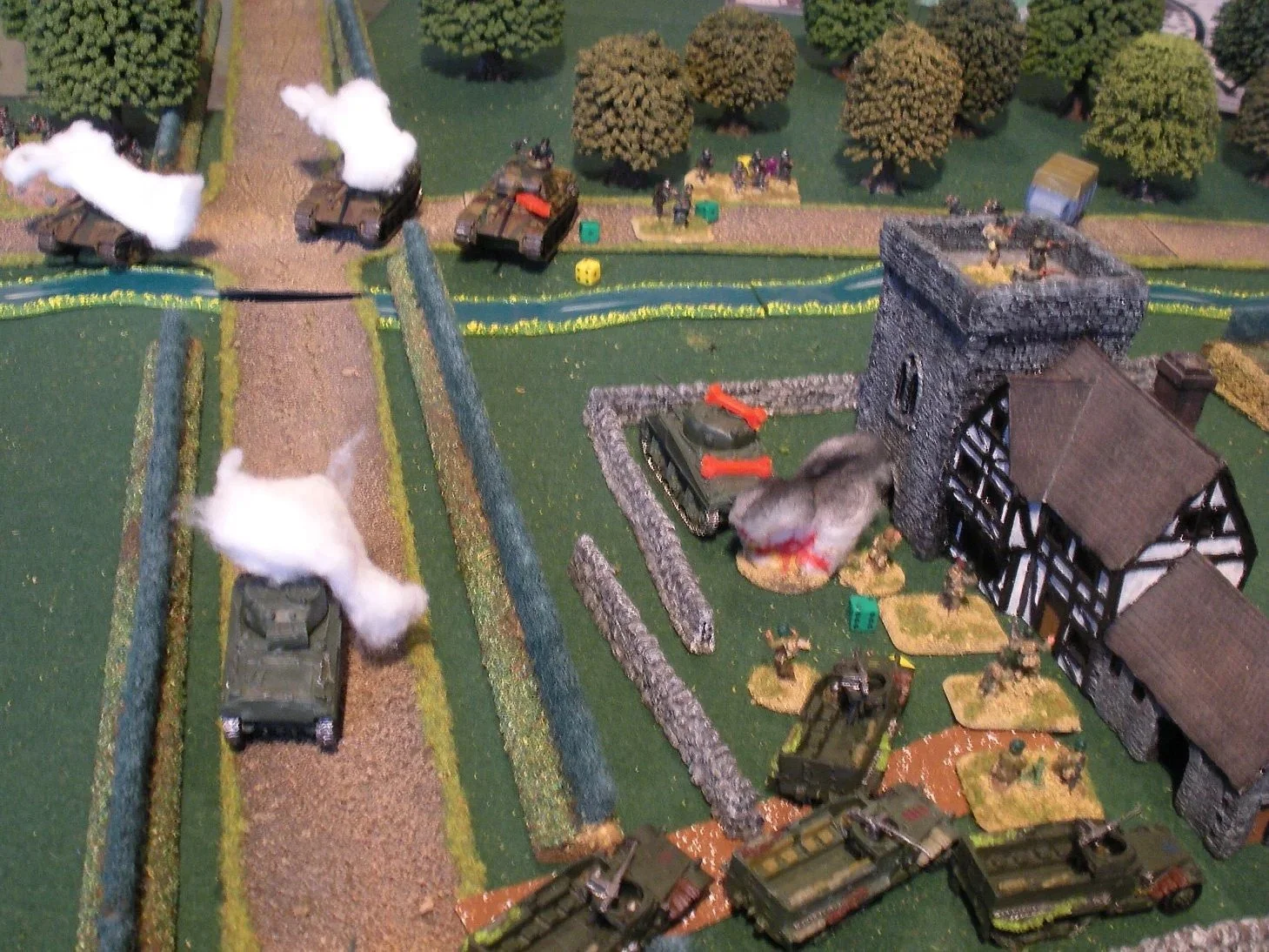 The photographs below show the end position of the forces. All the Germans had left were a badly damaged Panther, one infantry gun and one section. These retreated to their next defensive position.