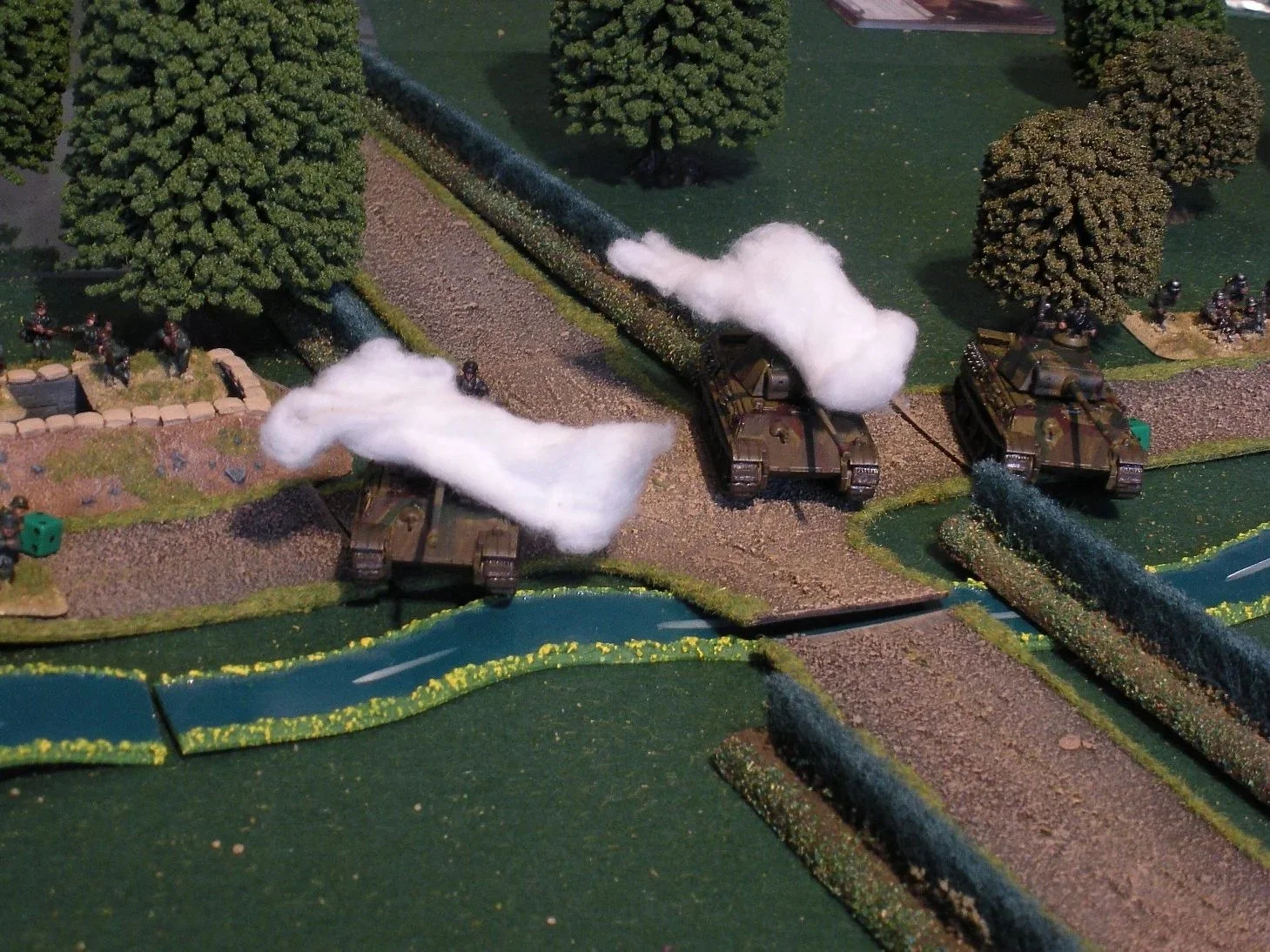 The obvious game changer was the two shots of the 76mm which destroyed the German defence in one go. One minute the Germans were in total charge and were about to move down the road to clear the infantry in there, the next the Americans had the run of the field.
