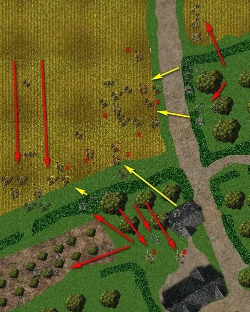 So I stick all my troops on the west flank, with a dummy blind thrown on the other side for good measure and to scout out.
