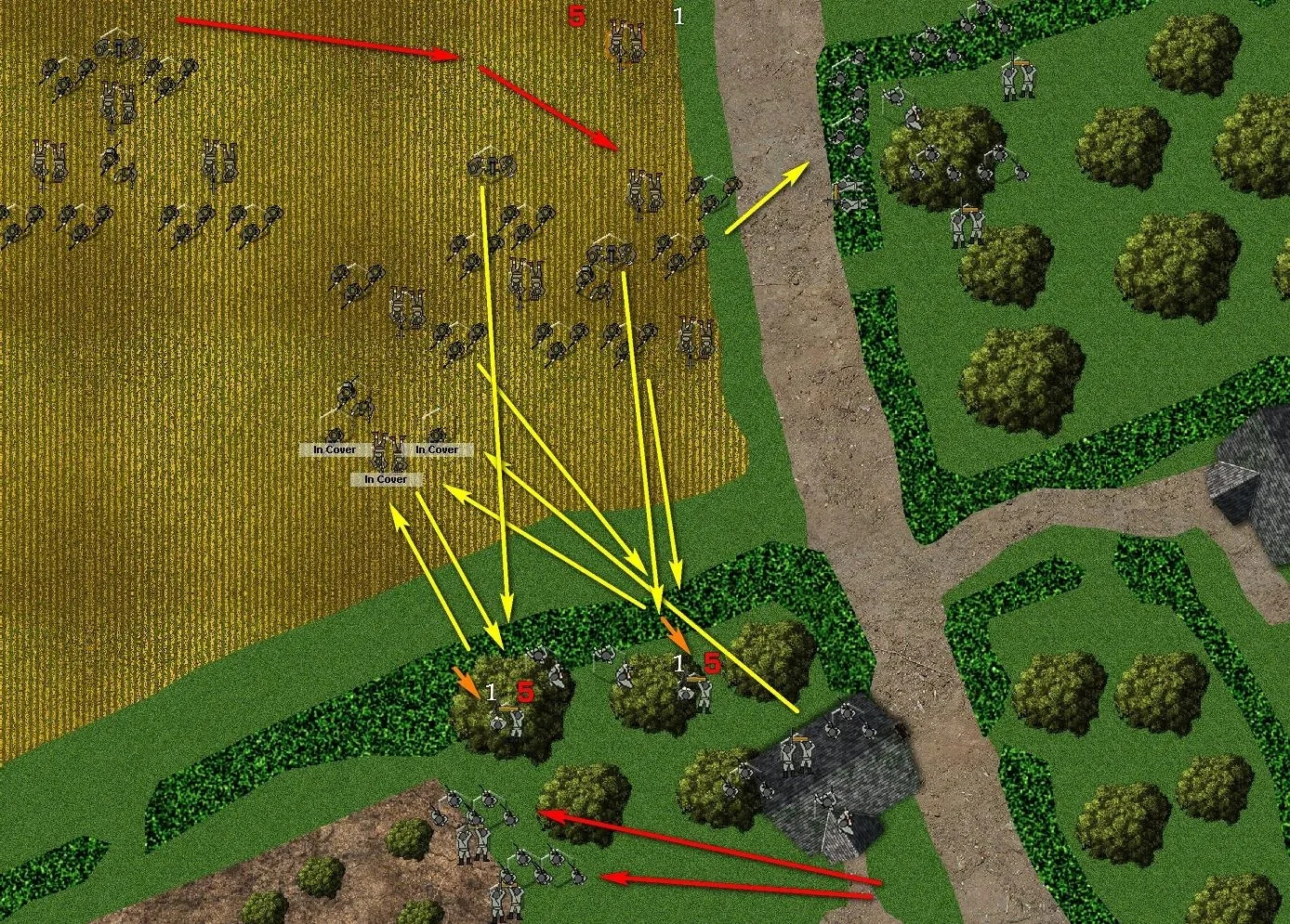 So far the British have lost seventeen men, while the Germans have lost three. Worse, the British have a platoon pinned and suppressed, one mauled one, and one out of the main action.