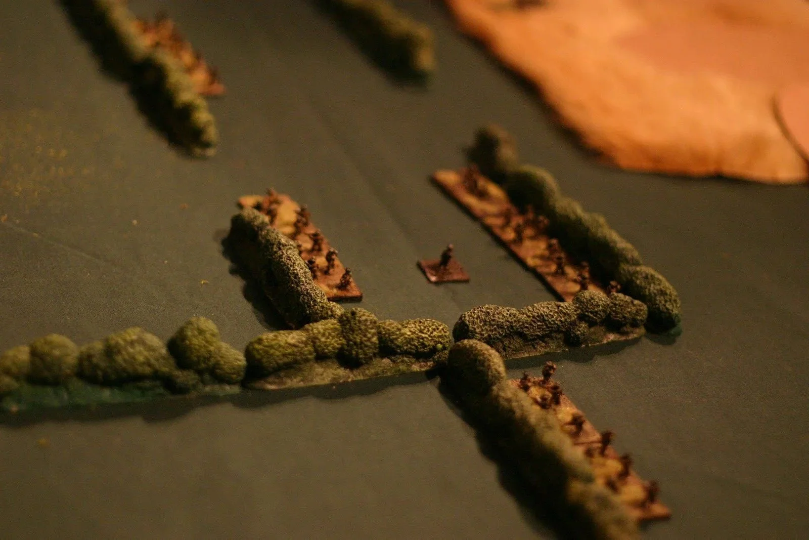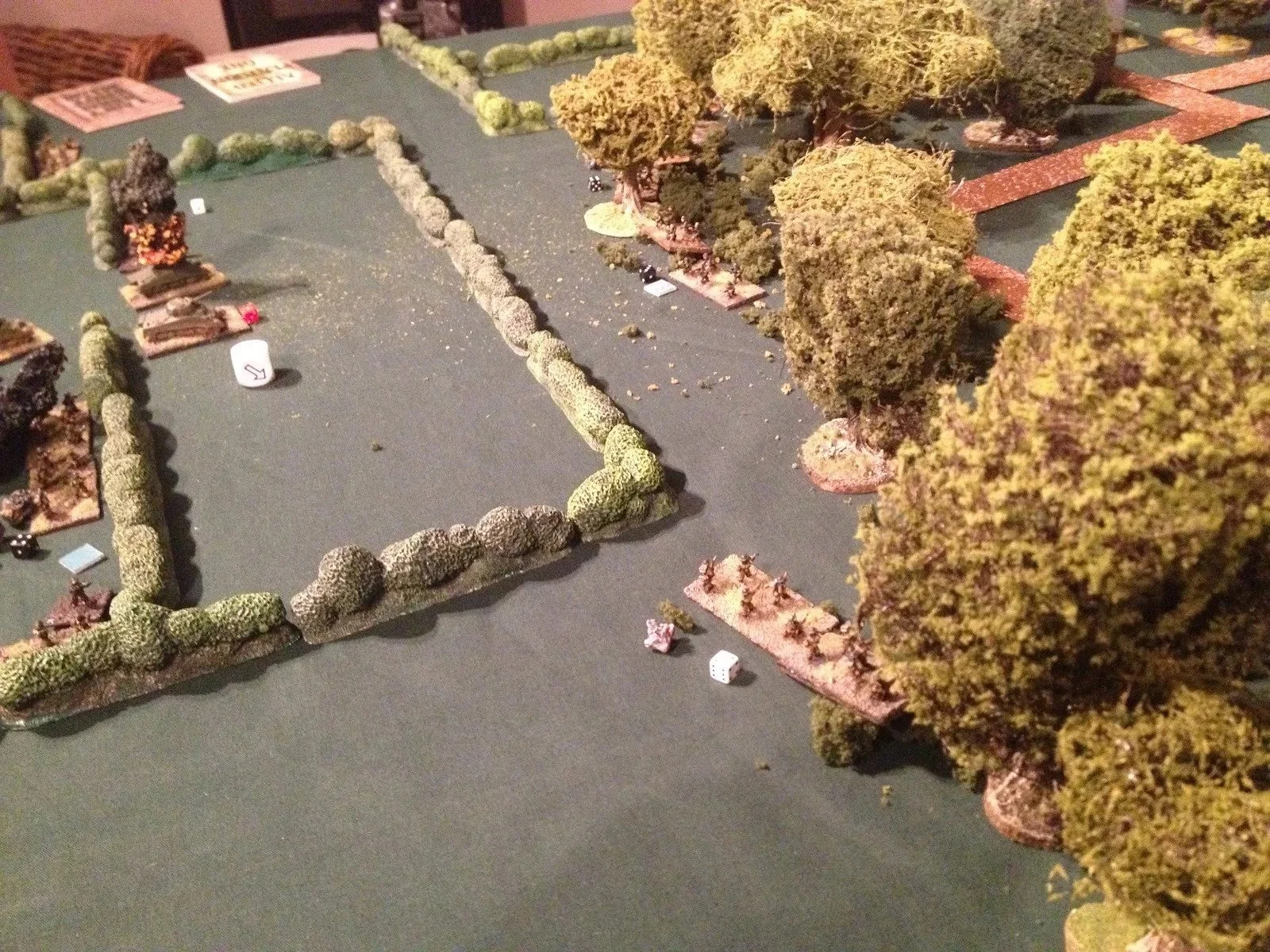 One of the British sections came up to the nearer hedge, so I deployed a couple of sections off blinds and opened up. Most gratifying, as the section in question took four casualties and about ten shock, and didn't stick around.