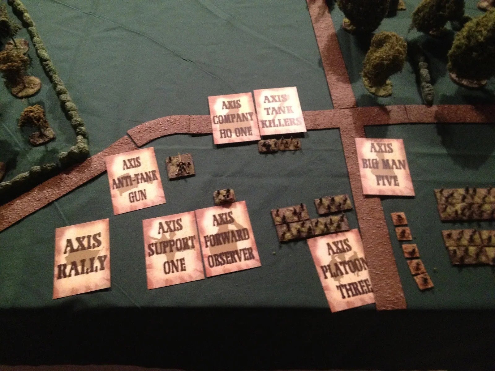 The following turn, they made the smart choice and deployed off blinds. On my Blinds card, I deployed the PanzerKnacker squad and the PanzerSchrek...