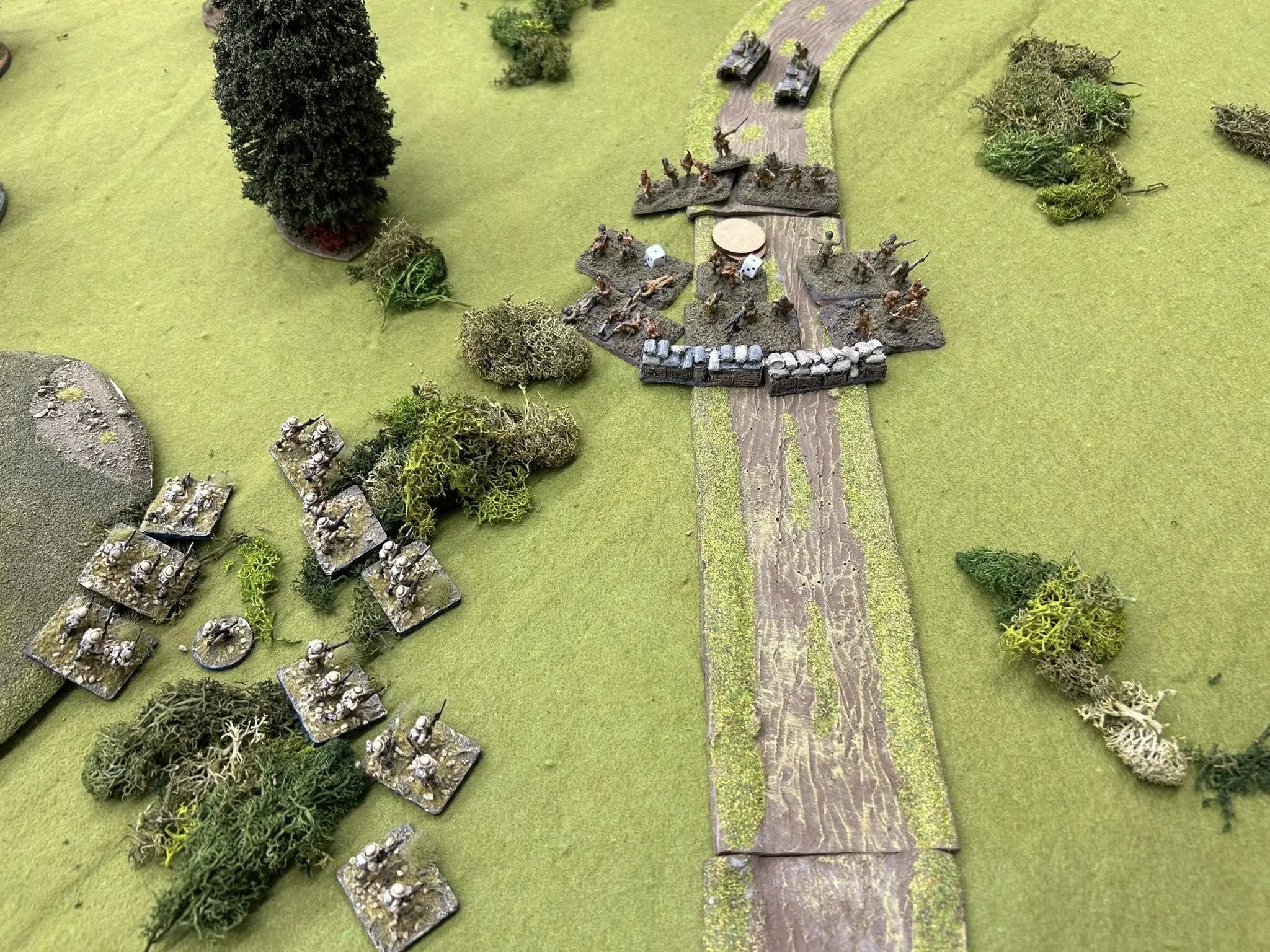 Meanwhile, to the south, a company of Gurkhas, rather too tentatively, approached a rather nasty looking road block which some well dug in Japanese.