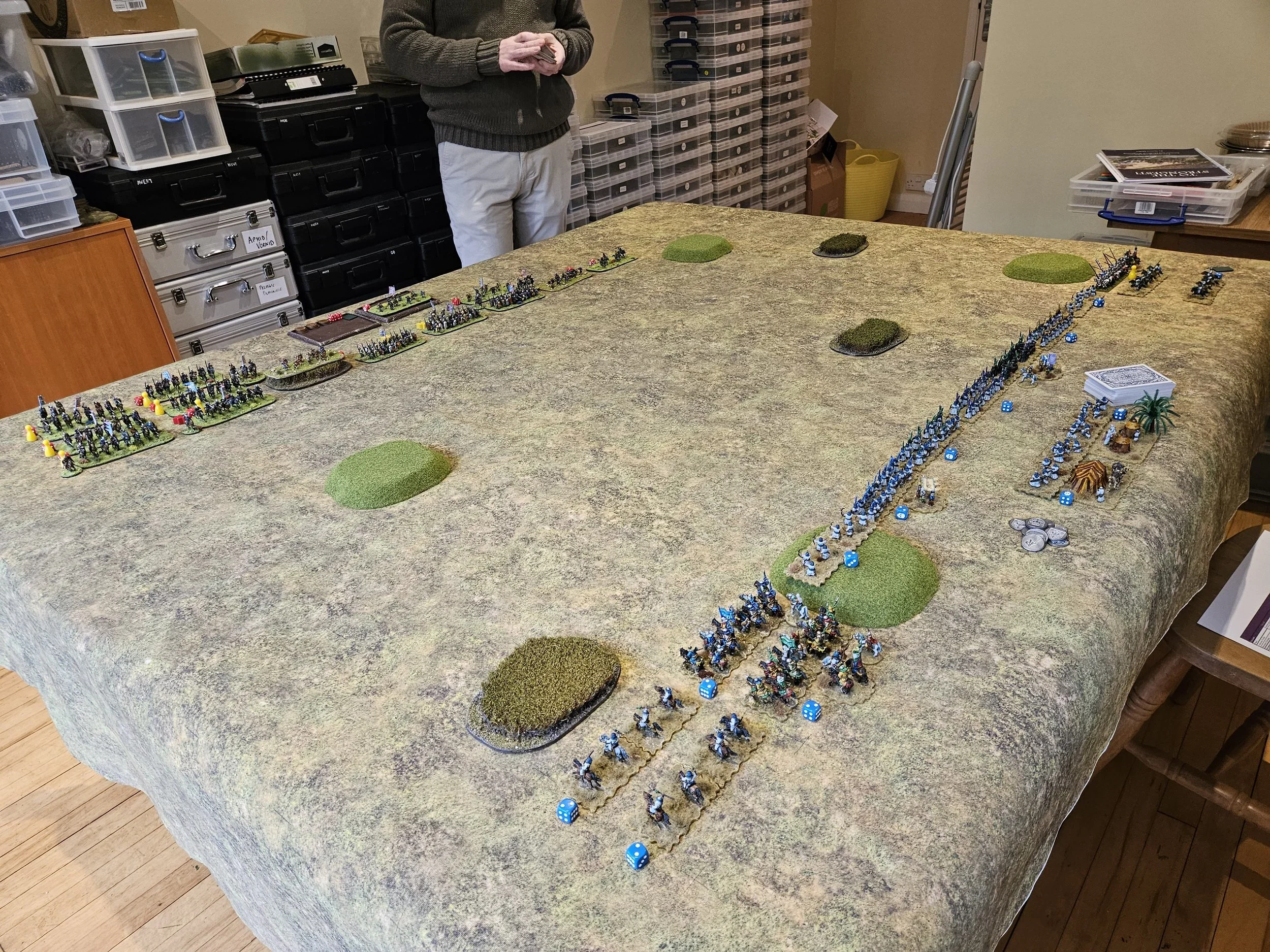 I now play TTS on a regular basis, up-sizing my old Vis Bellica armies to suit, and even basing my new (at time of writing!) Classicial Indians on element bases specifically for the game. Over the first (long), lockdown, I introduced Daughter #1’s now ex-boyfriend to the game, and had a weekly session where we’d regularly get two or three battles in. I’ve even actually played TTS against Daughter #2, with her favourite commander “The Beardless King” in charge, and and so far haven’t managed to beat her yet! I’ve even invested in a large ECW collection to play the ECW variant For King & Parliament, my first venture into pike and shot but that, as they also say, is another story. Click on the pictures below to see some AARs.