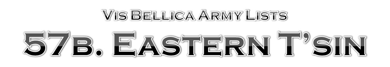 Jonathan Philp suggests that list 57 can be made more specific for the Eastern T'sin armies of the period 317AD. The list reads: |